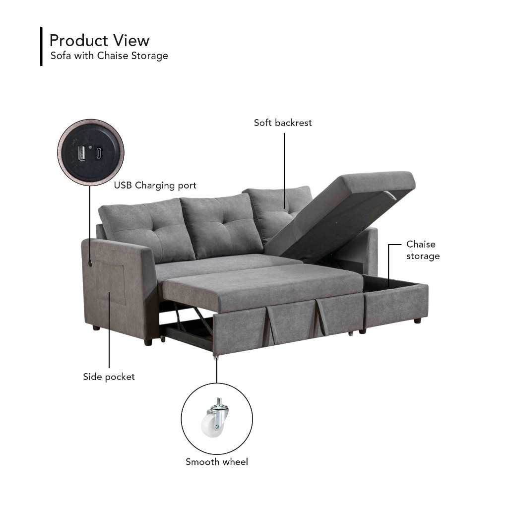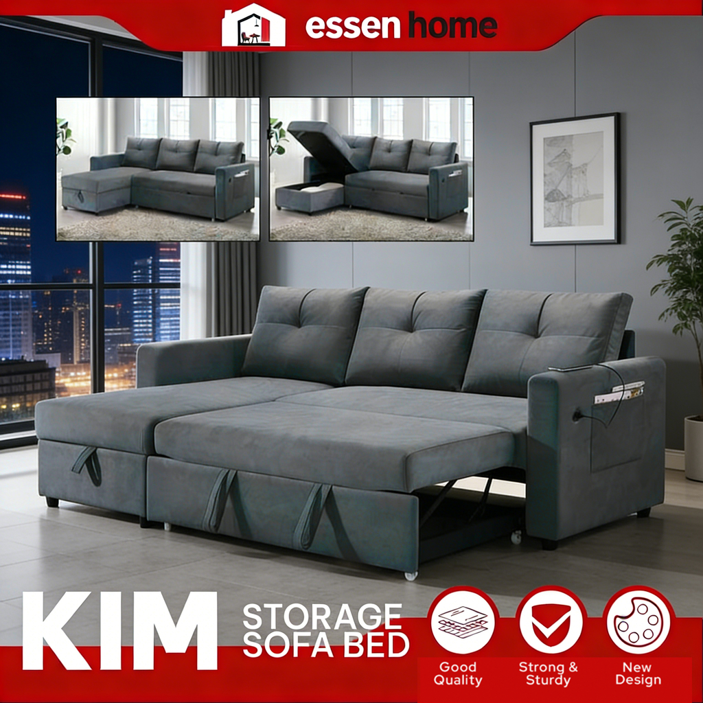 ⚡READY STOCK⚡ESSEN HOME PET FRIENDLY EASY CLEAN 7FT KIM L Shape 3 Seater Sofa With Storage+Pullout