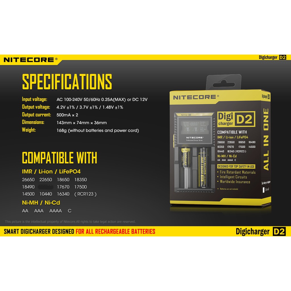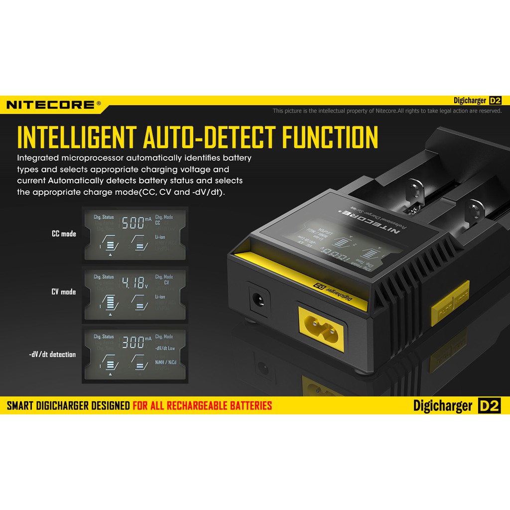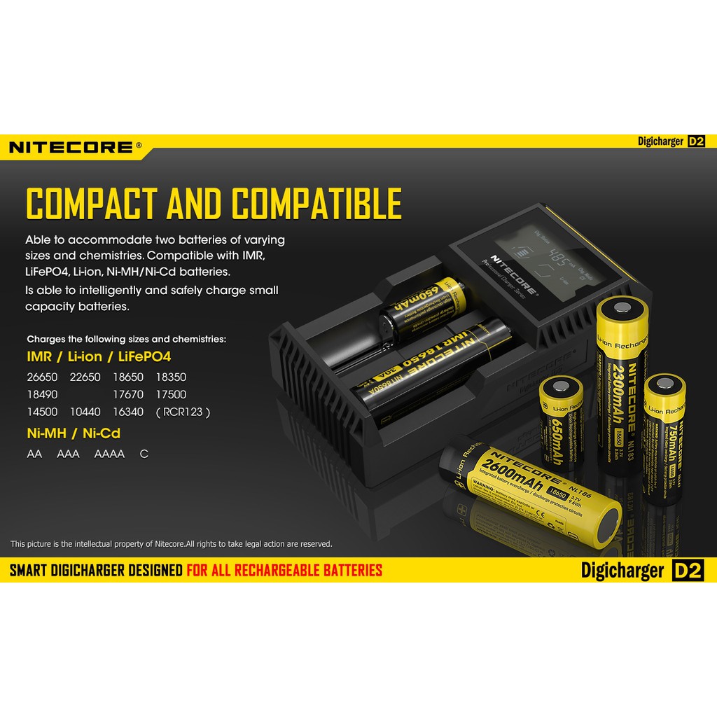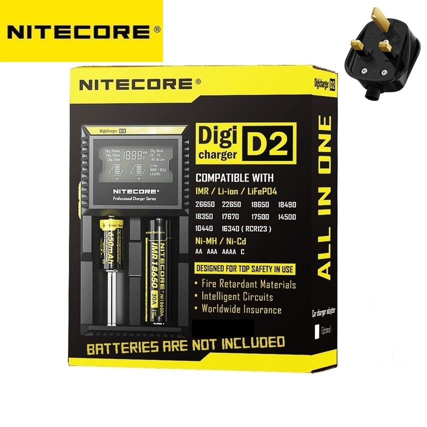 Nitecore D2 Digicharger LCD Display Battery Charger Malaysia UK 3 Pin Plug