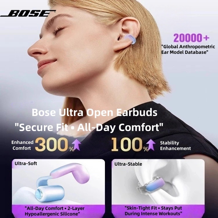 Bose Ultra Open Earbuds, True Wireless Ear Cuff Headset with Bose Immersive Audio, Bluetooth 5.3, Snapdragon Sound, Secure Fit for Workouts
