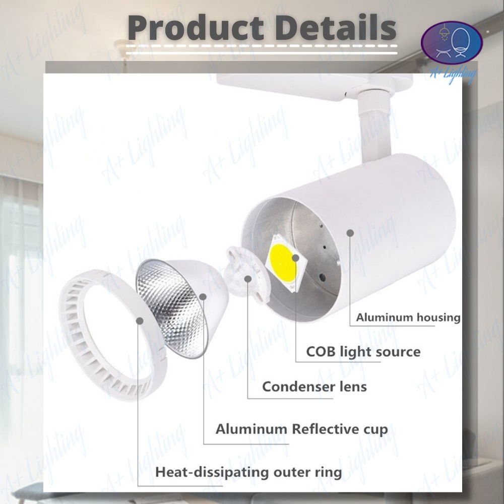 LED Track Light Black White 12W / 24W / 36W COB Spotlight Adjustable Rail Track Spot Light Ceiling Light Lampu Siling轨道灯