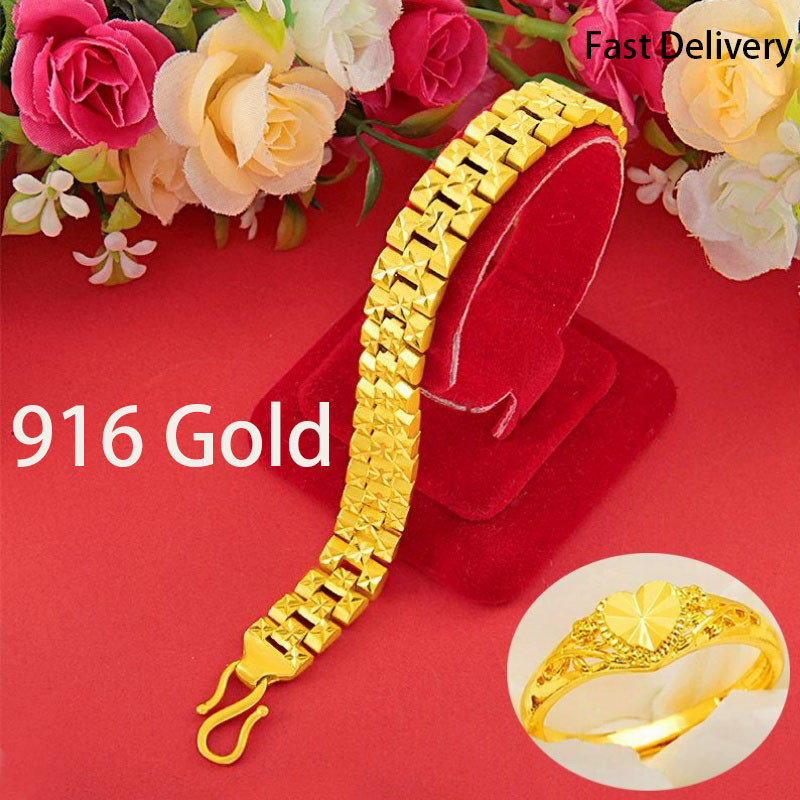 Gold 916 Original Malaysia Fashion Bracelet for Women Men Jewellery Gelang Tangan Perempuan Rantai Tangan Emas Bangkok