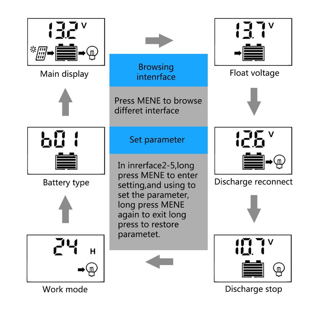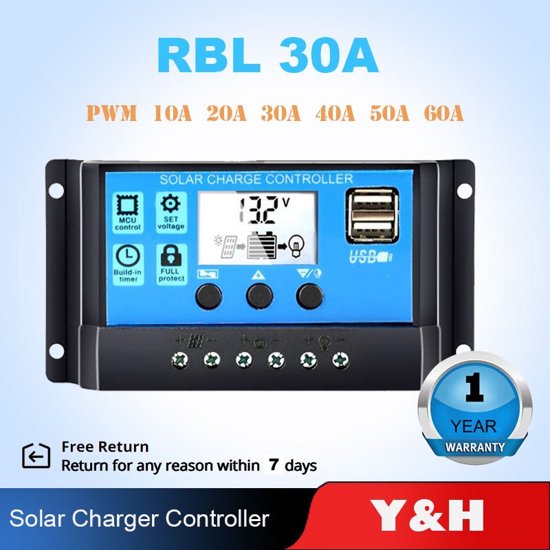 Y&H Solar Panel Battery Charger Controller Regulator 30A 12V 24V PWM LCD display Dual USB