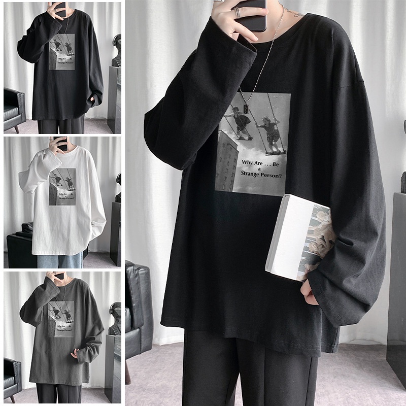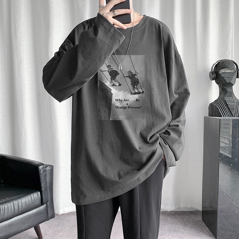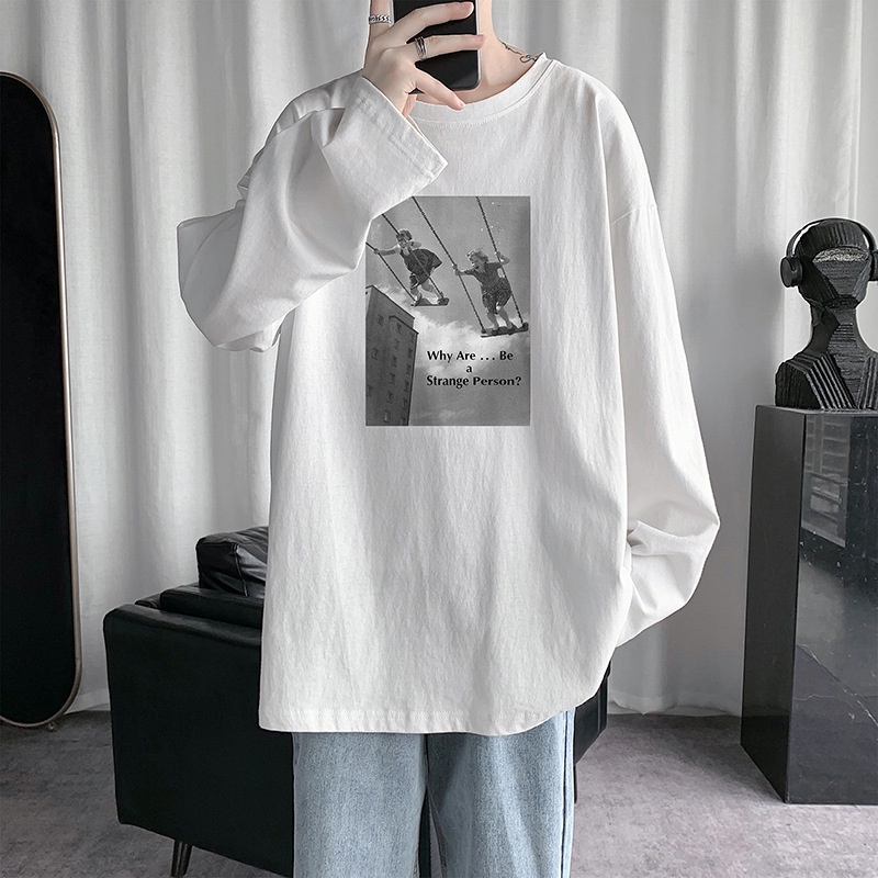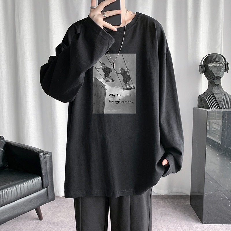 Korean Style Printed T Shirt Men 8XL Plus Size Long Sleeve Tshirt Fat Man Oversized Tee Casual Loose Top
