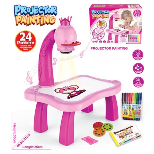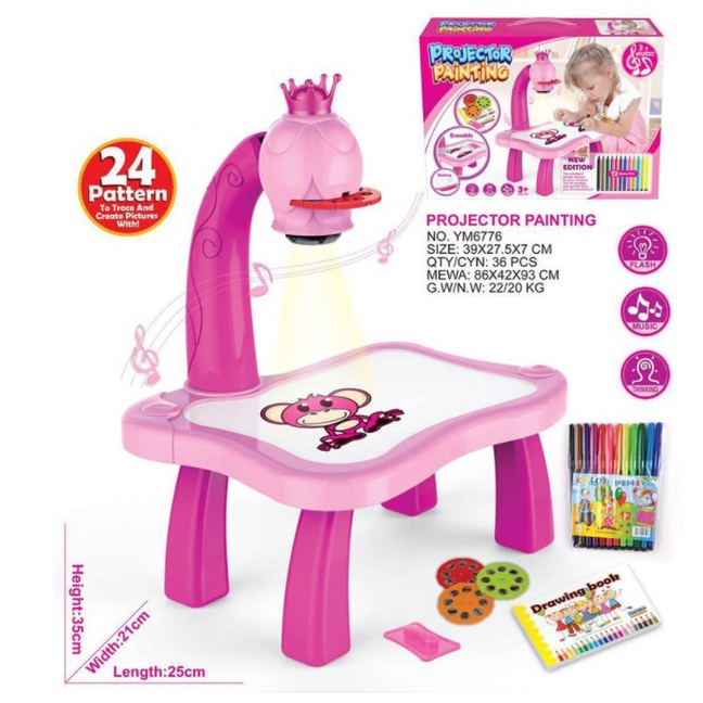 BELAJAR MELUKIS Meja Melukis Kanak-Kanak Dengan Lampu Kids Projector Drawing Table Children Projector Drawing Table