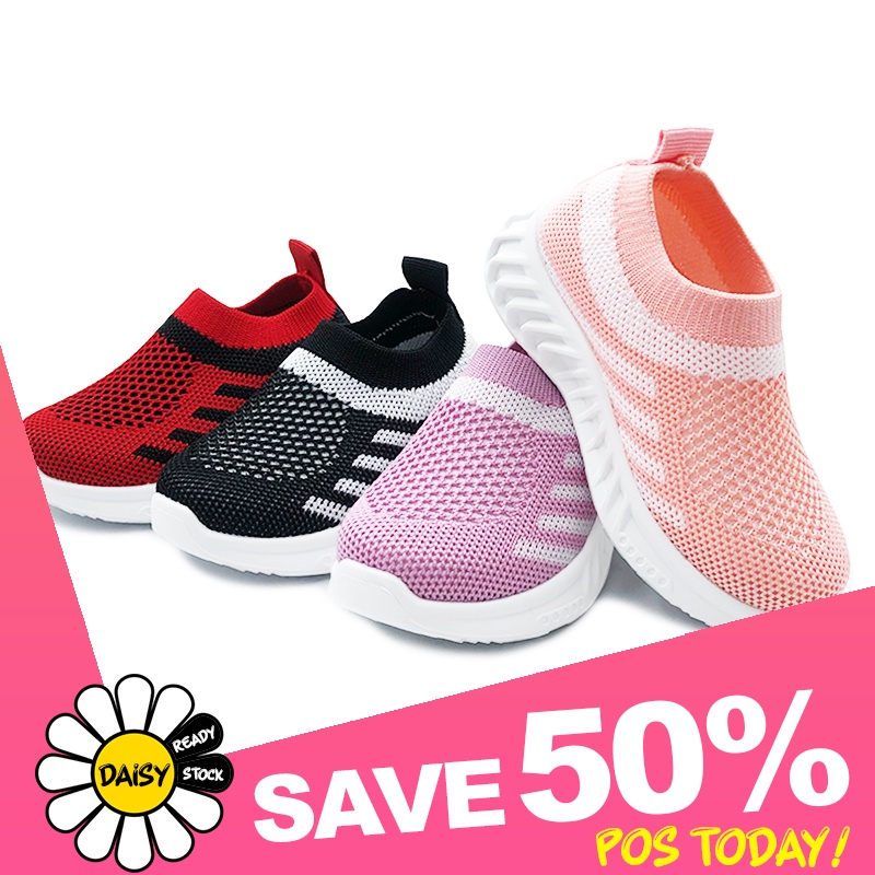 🌼𝗗𝗔𝗜𝗦𝗬🌼「Size 22-39」Kids Sport Shoes | Boys Sneakers | Girls Shoes | Baby 4 Stripe | Kasut Sukan Budak Lelaki Perempuan