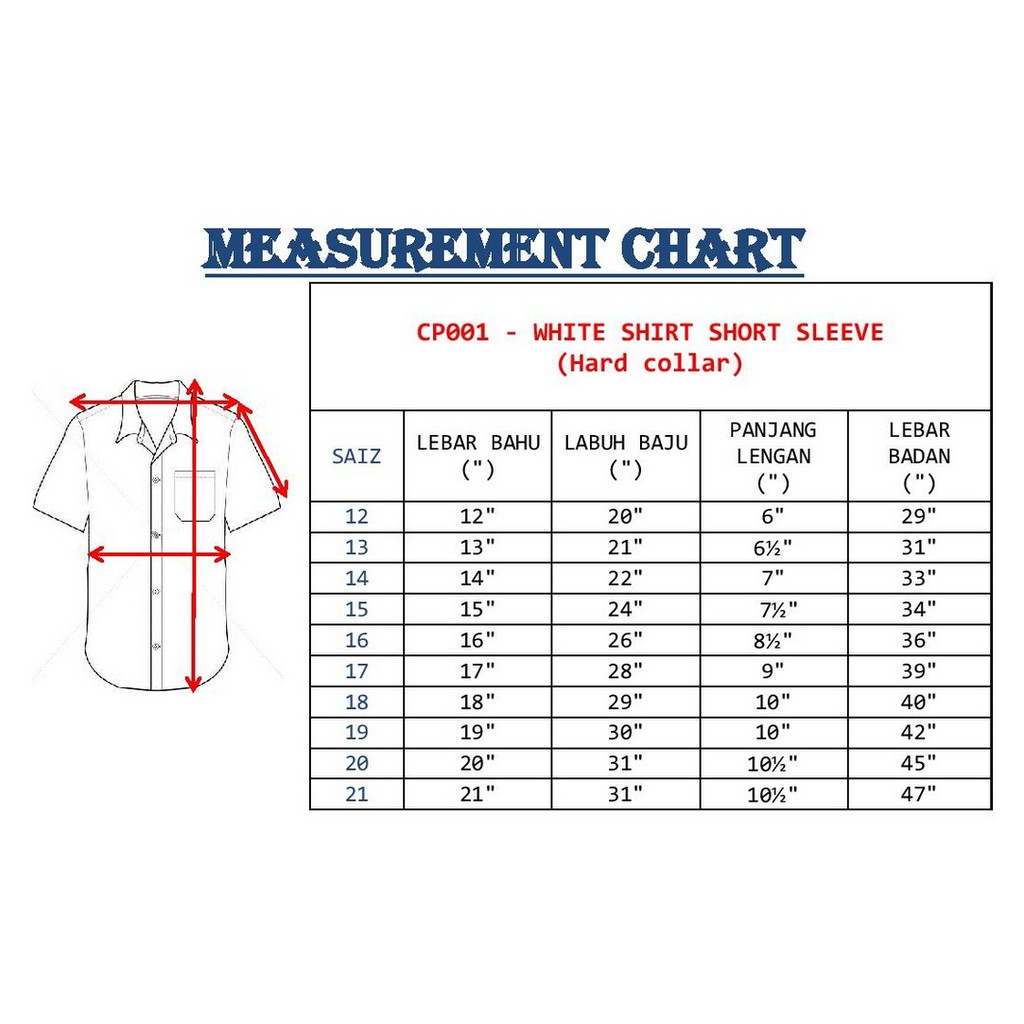 CANGGIH CP001 WHITE SHIRT (HARD COLLAR) SCHOOL UNIFORM