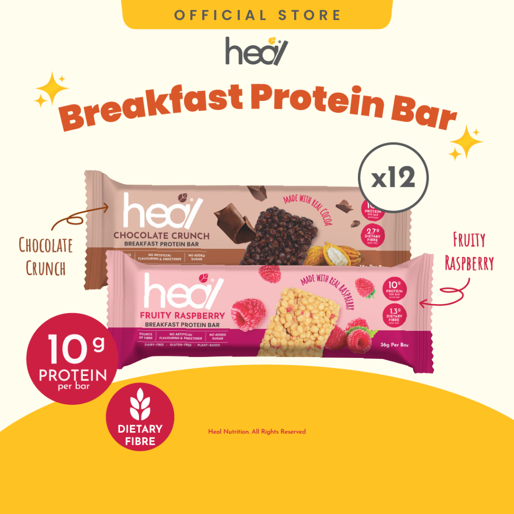 Heal Chocolate Crunch/Fruity Raspberry Breakfast Protein Bar (12 Bars) - HALAL