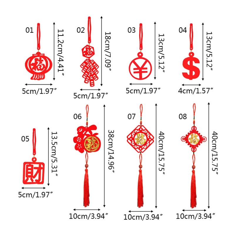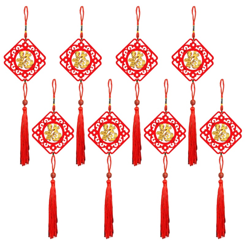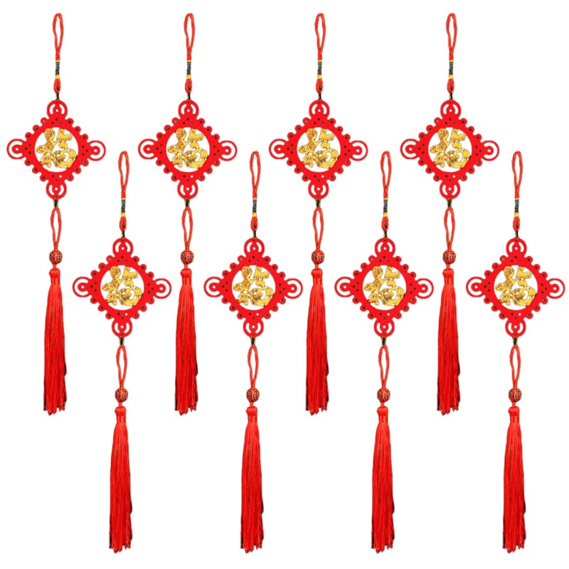 【CH*】 Chinese Mini Red Lantern Chinese Knot Pendants 8 Pcs Wall Art for Spring Festival Party Background Decoration