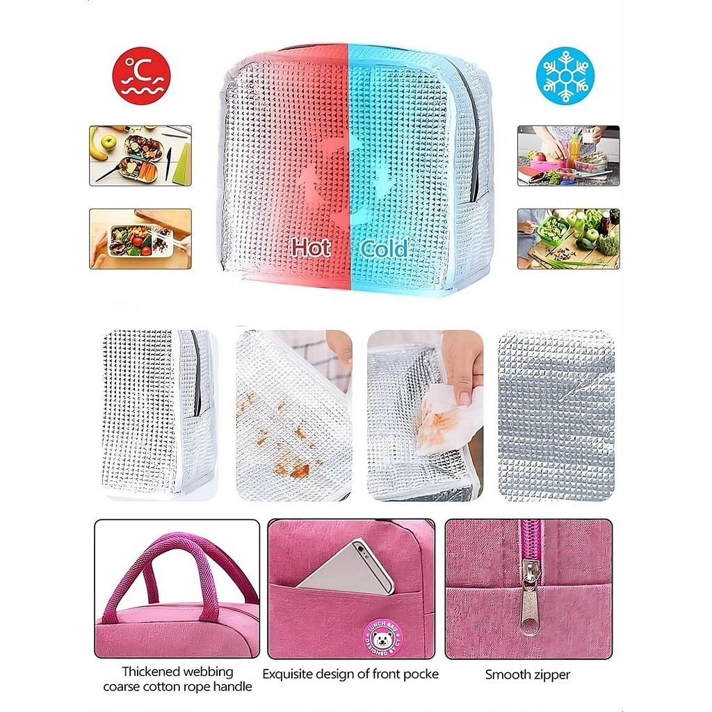 Lunch Bag Insulated Cool Thermal Food Storage Box Carry Tote Adult Kid Beg Makan Bertebat Kotak Penyimpanan Dewasa Kanak