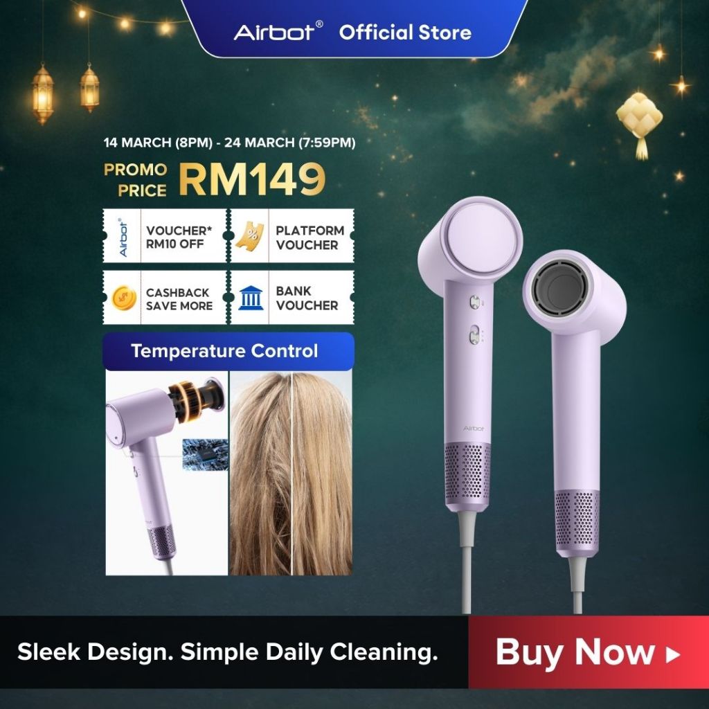 Airbot Aria Lite | High Speed Hair Dryer 200mil Negative Ions Temperature Control Smart RGB Light