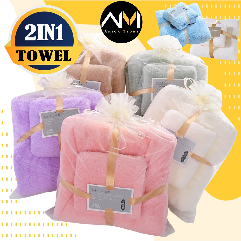 Tuala Viral Towel Set 2IN1 Microfiber Bath Towel Set Absorbent Water | Tuala Hadiah | Tuala Mandi