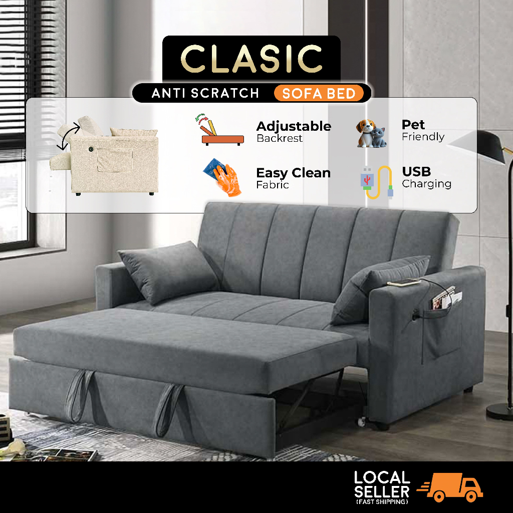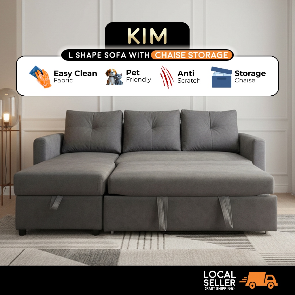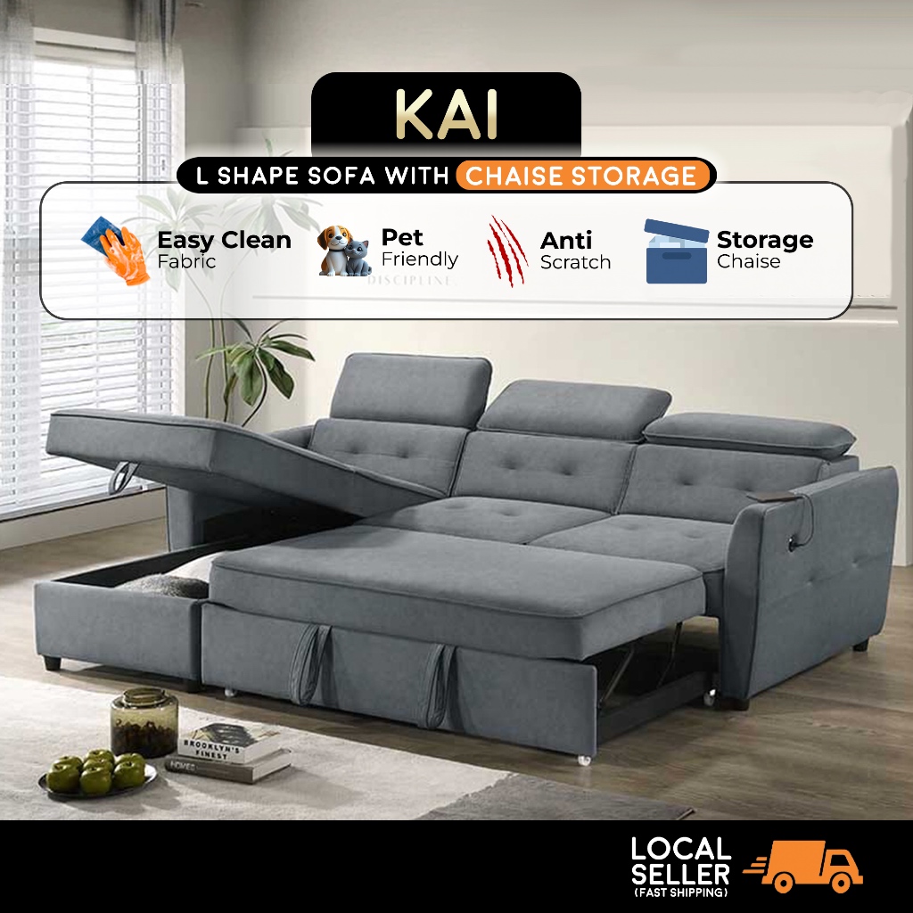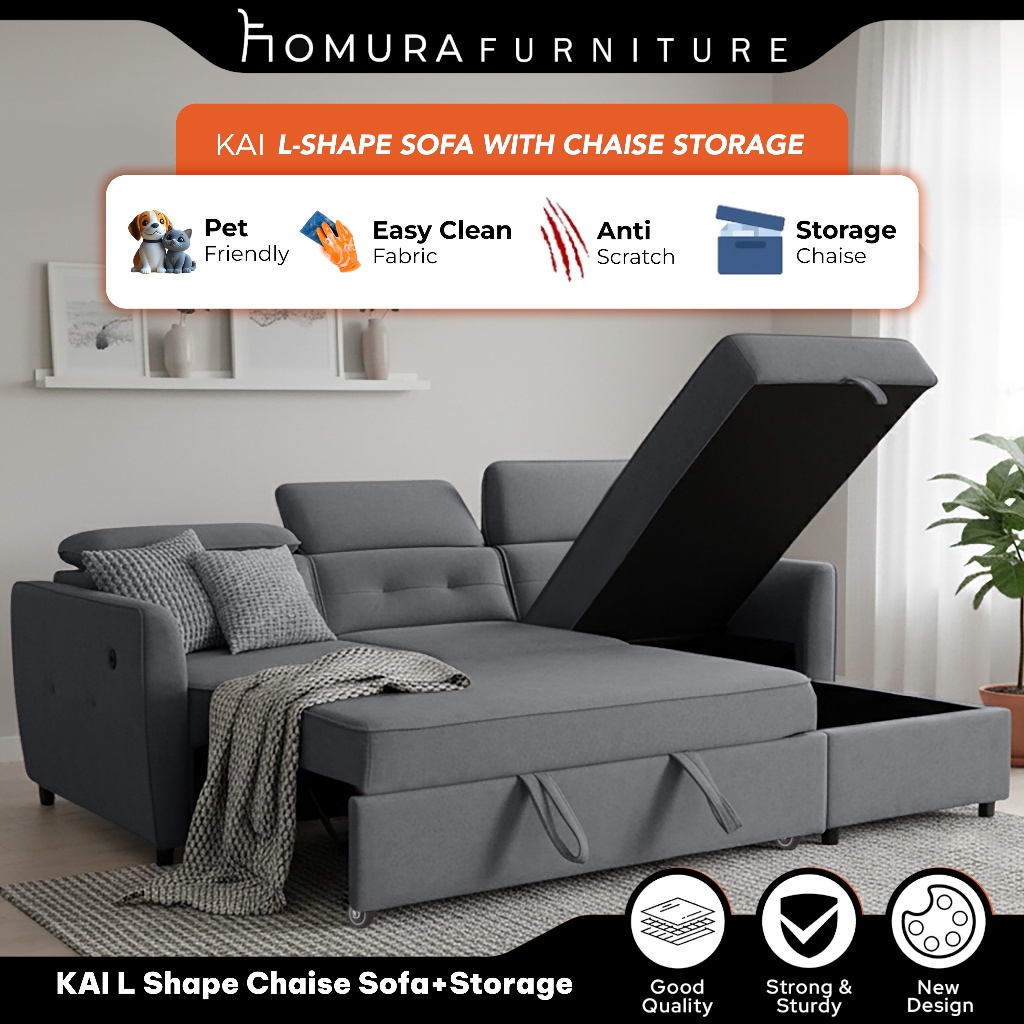 ⚡READY STOCK⚡HOMURA KAI EASY CLEAN 7.2FT KIM L Shape 3 Seater Sofa Bed With Storage&Adjustablehead