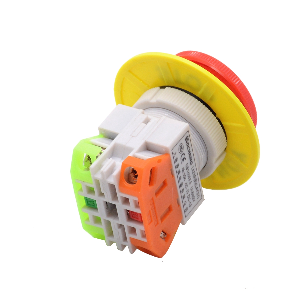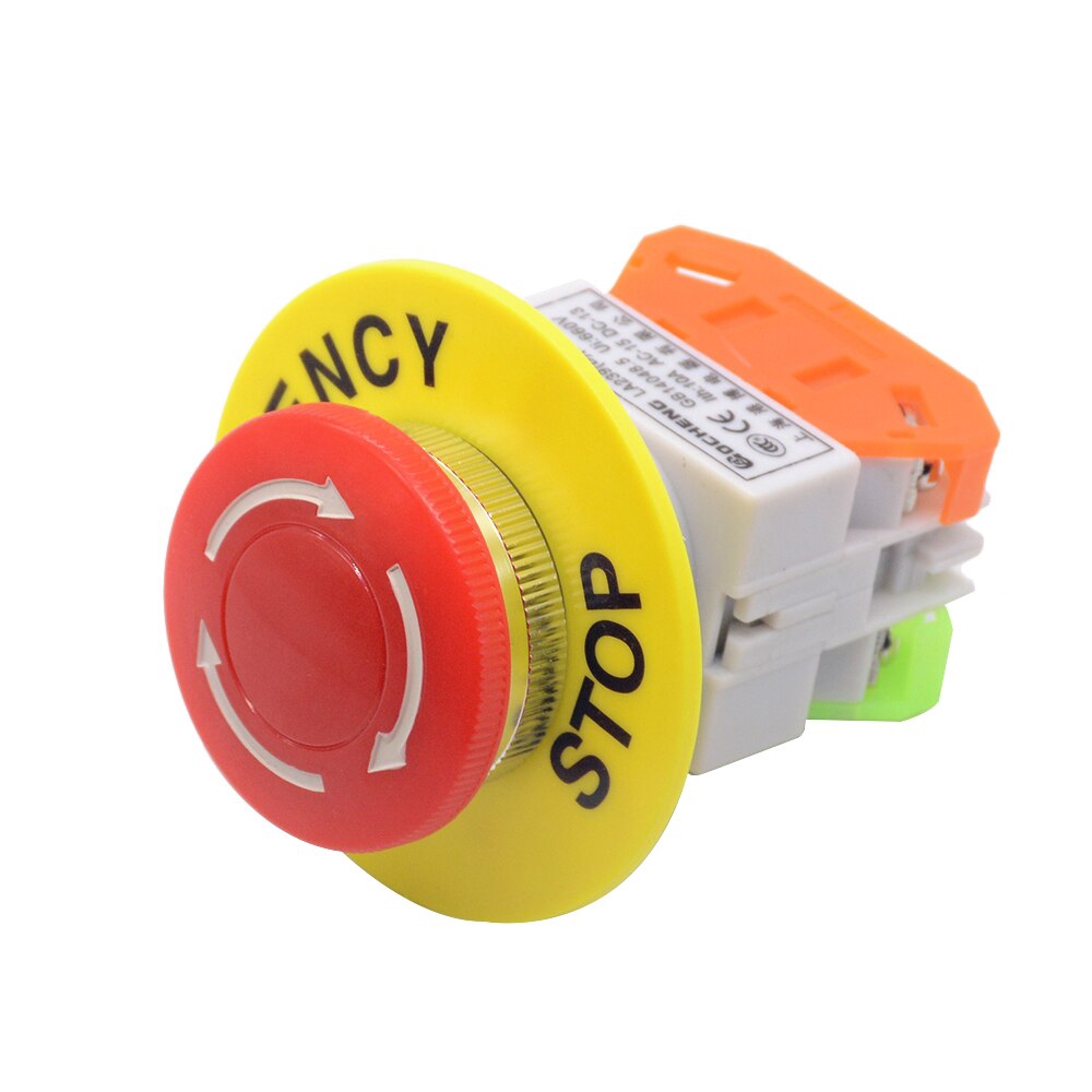 Red Mushroom Cap DPST Emergency Stop Push Button Switch 1NO 1NC AC 660V 10A Lift Elevator Latching Self Lock 30mm