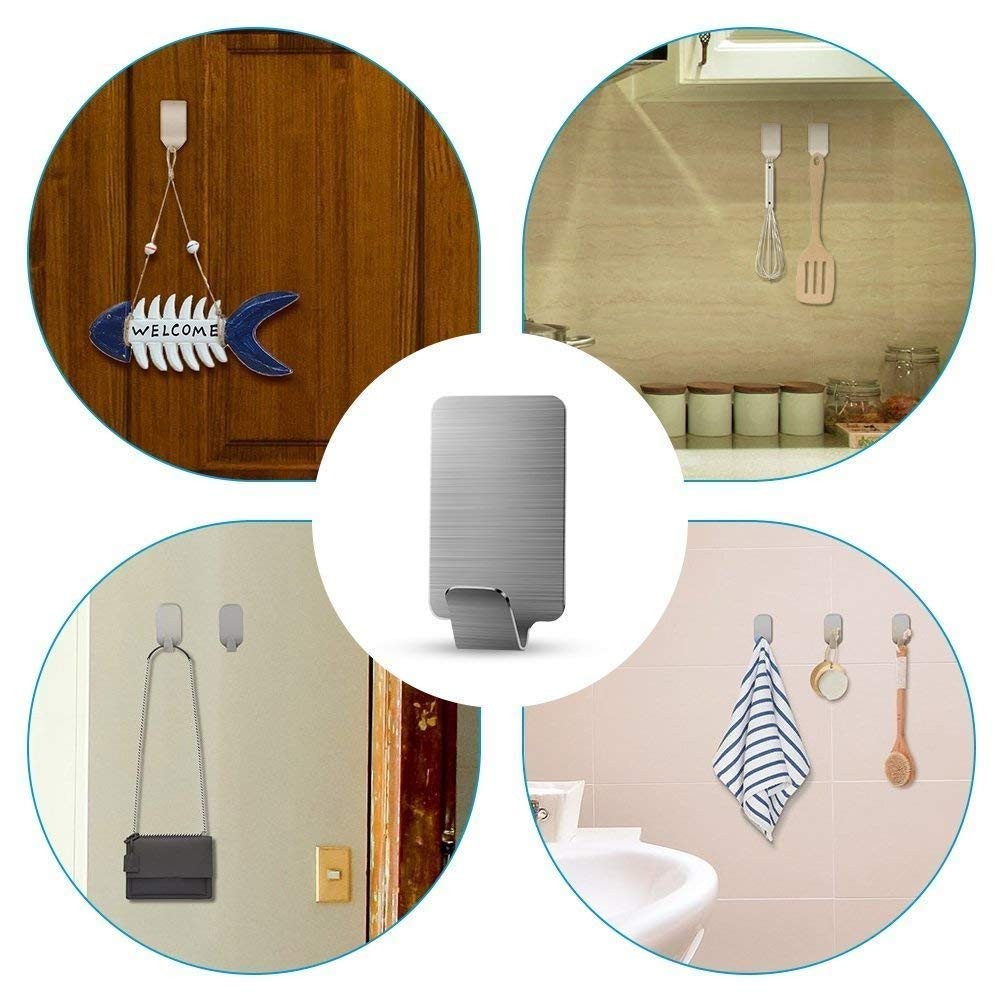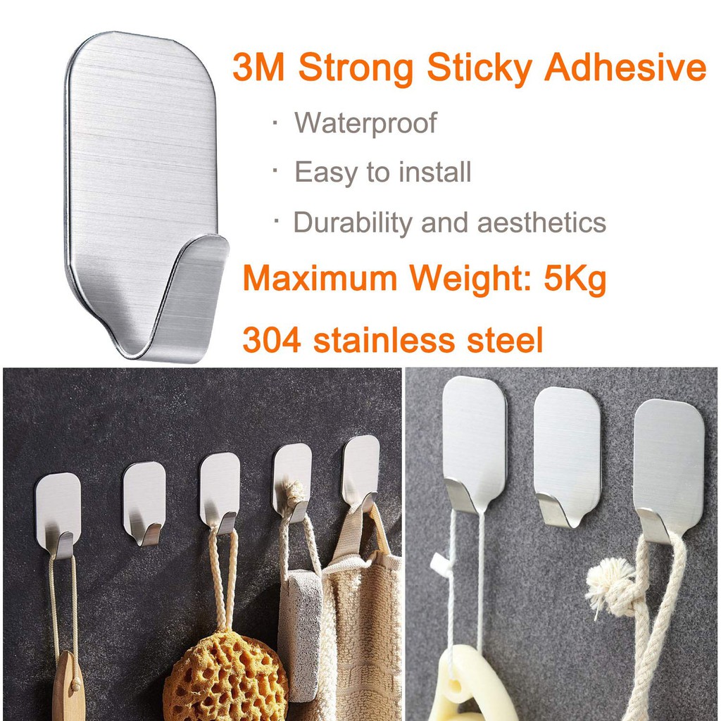 10/8/4/1Pcs 3M Hooks Self Adhesive Home Kitchen Wall Door Stainless Steel Hook Bathroom Hanging Household Rack