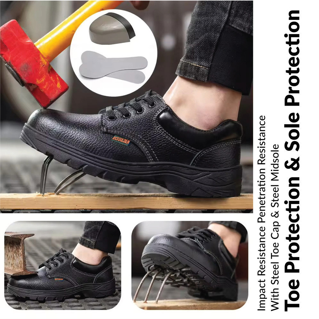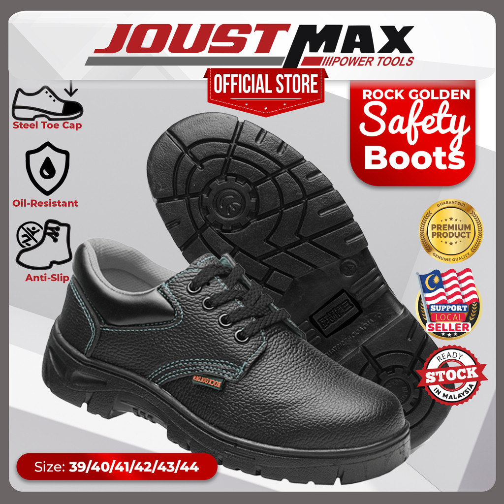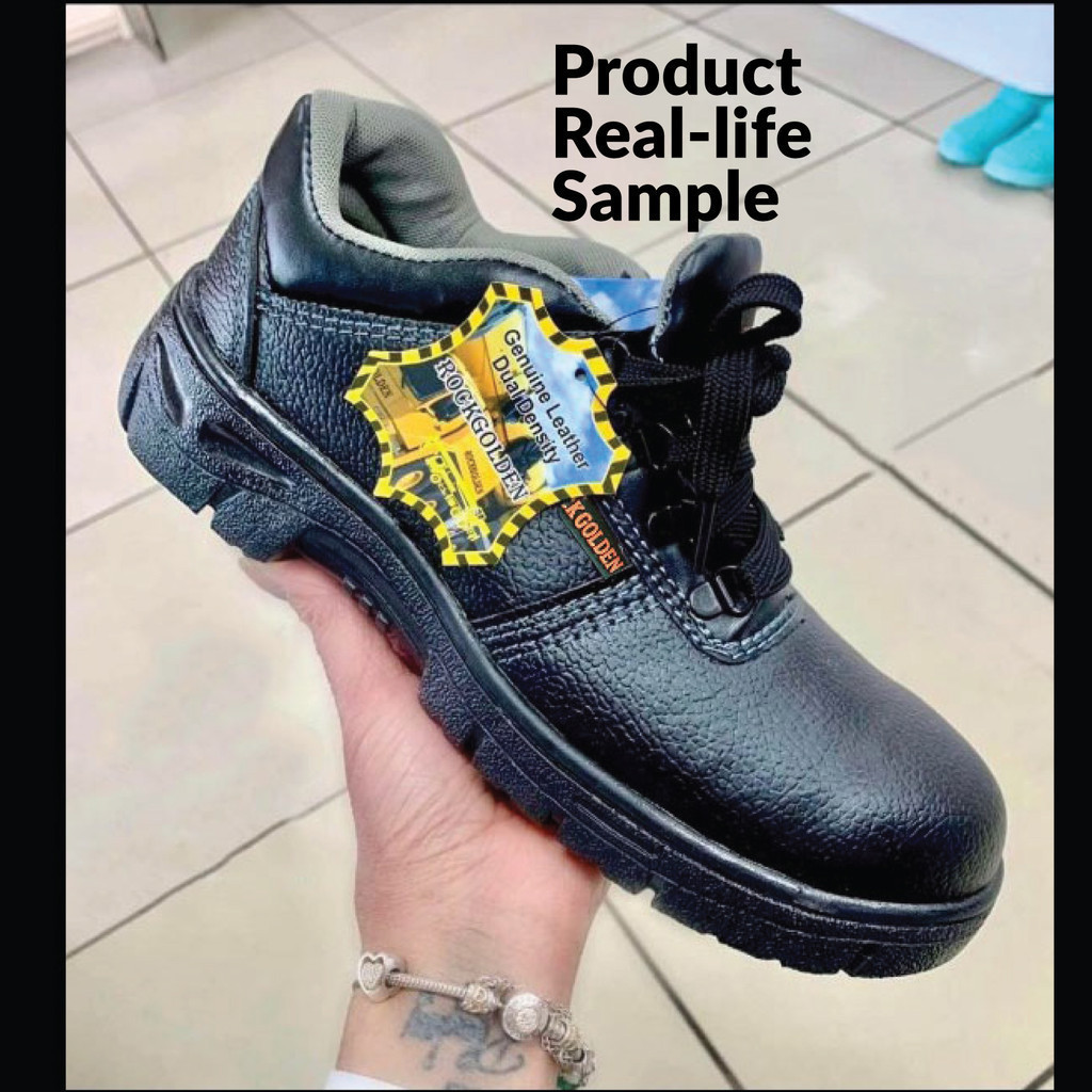 Black Leather Safety Shoes Safety Boots Mens Working Shoes Steel Toe Cap Steel Midsole Kasut Kerja Kilang Rock Golden