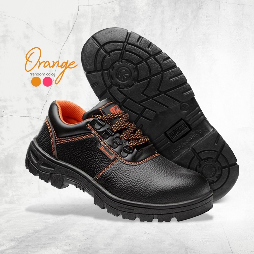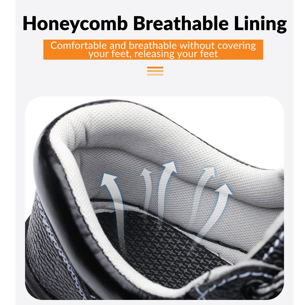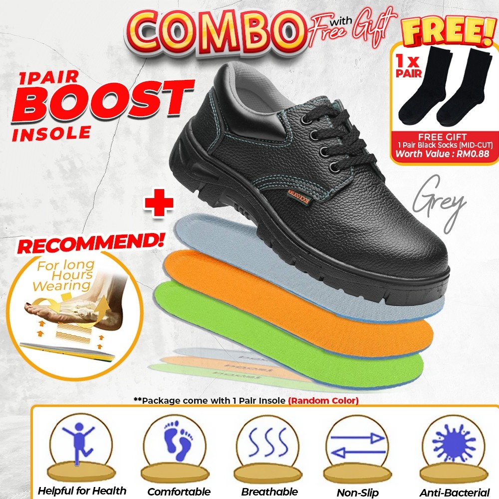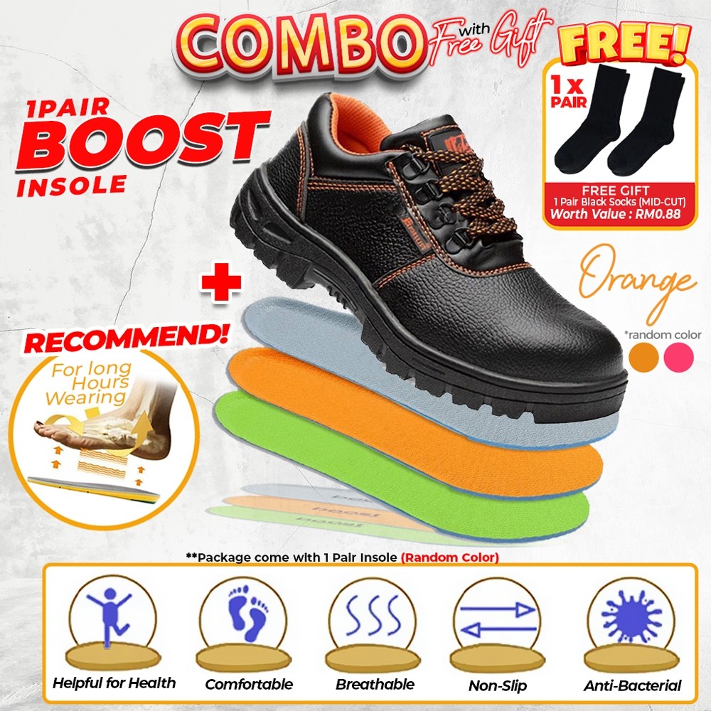 Black Leather Safety Shoes Safety Boots Mens Working Shoes Steel Toe Cap Steel Midsole Kasut Kerja Kilang Rock Golden