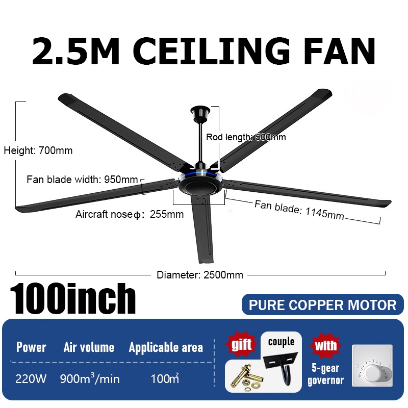 100inch industrial ceiling fan 2.5m heavy duty DC kipas siling besar witch remote control kipas industri