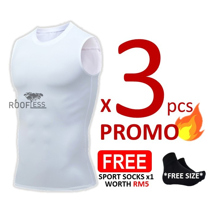 ROOFLESS Tank Top Men Singlet Men Compression Shirt Baju Gym Singlet Gym Shirt Men Sleeveless Jersey Baju Tight 背心男