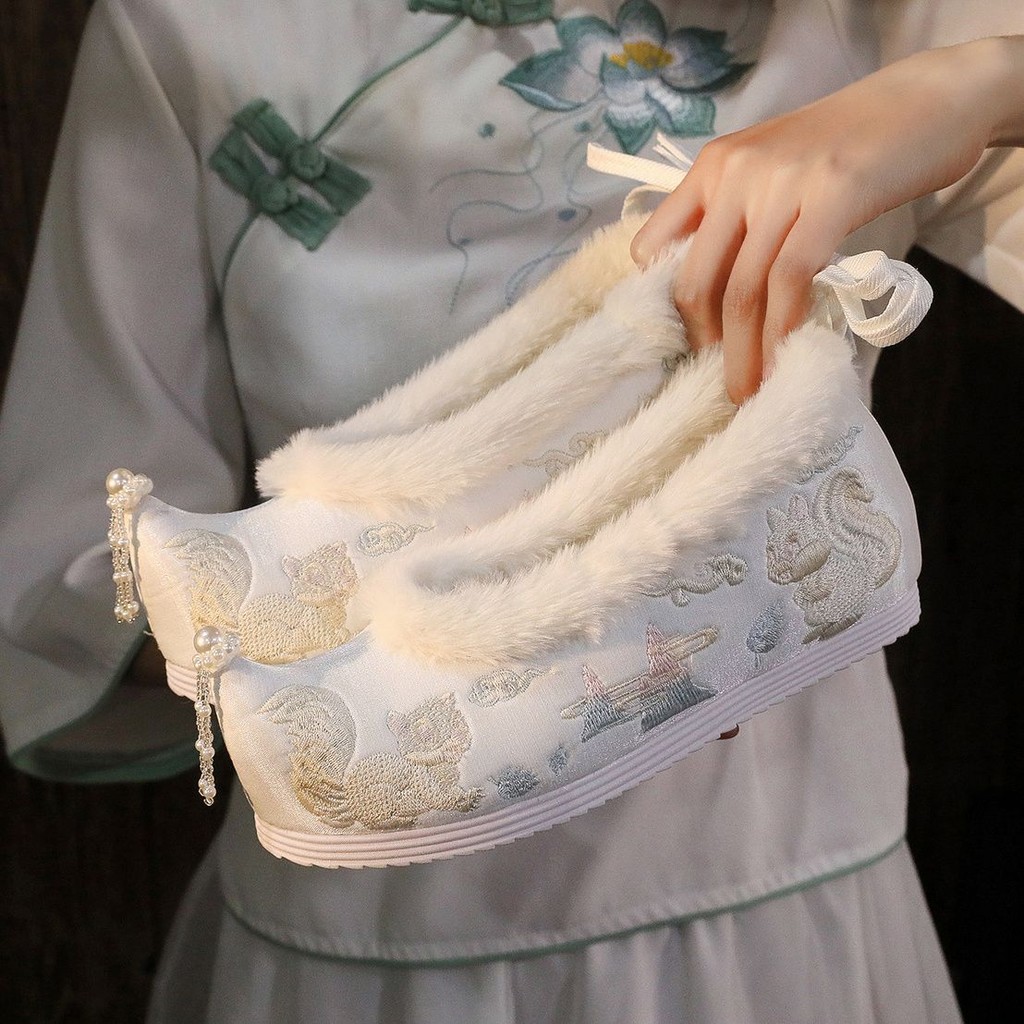 古风绣花鞋 汉服鞋 国风鞋 女 内增高 新中式 布鞋 翘头弓鞋 古装搭配