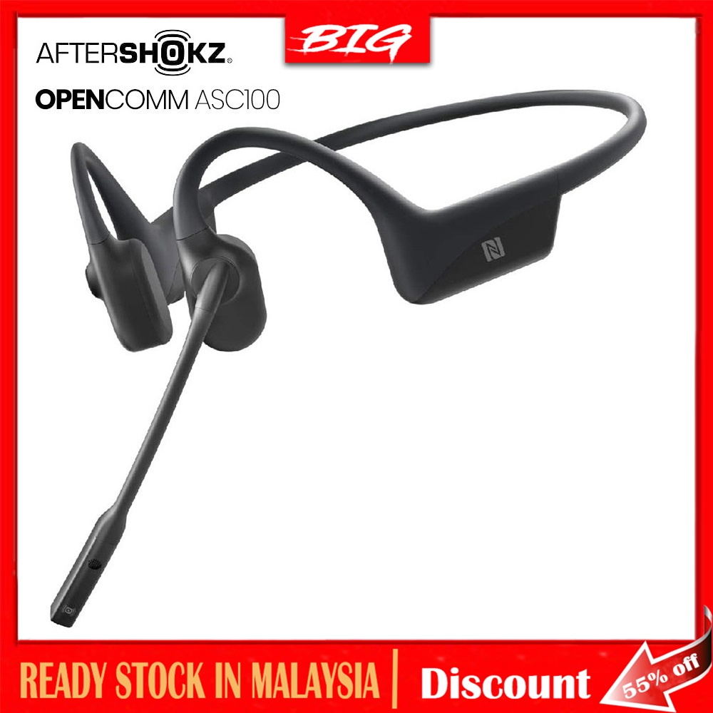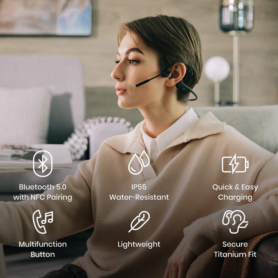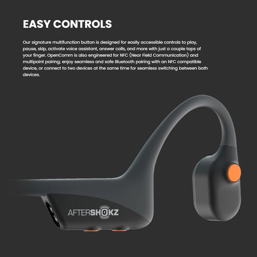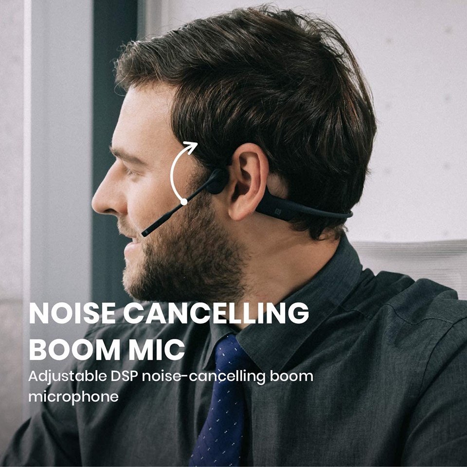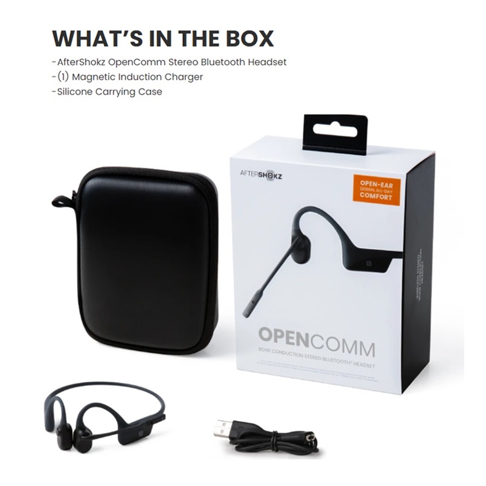 AfterShokz OpenComm ASC100 Bone Conduction Open-Ear Wireless Headphones | Noise-Canceling Boom Mic | 16 Hours Talk Time
