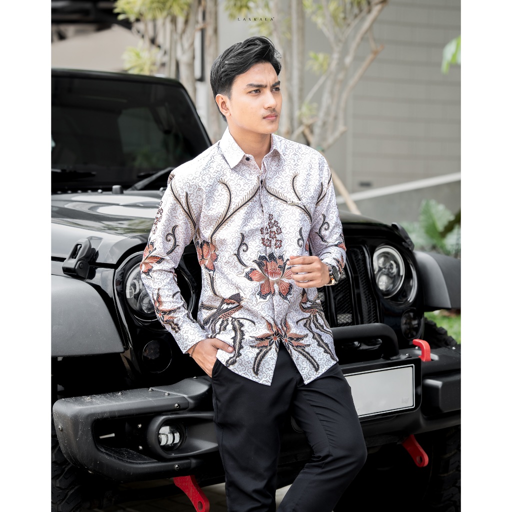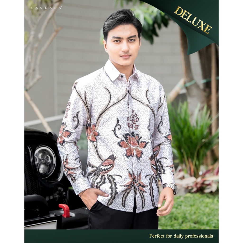 KEMEJA Laskala Batik Premium Sallang Cream Men's Slimfit Long Sleeve Batik Shirt