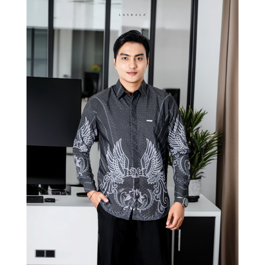 LASKALA BATIK Premium Mamuju Black Men's Slimfit Long Sleeve Kemeja Batik Shirt