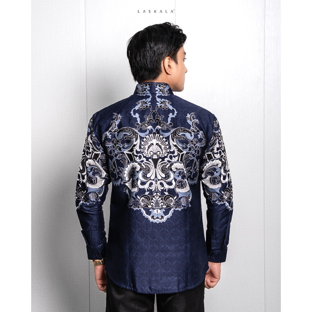 LASKALA BATIK Premium Sunda Kelapa Navy Men's Slimfit Long Sleeve Kemeja Batik Shirt
