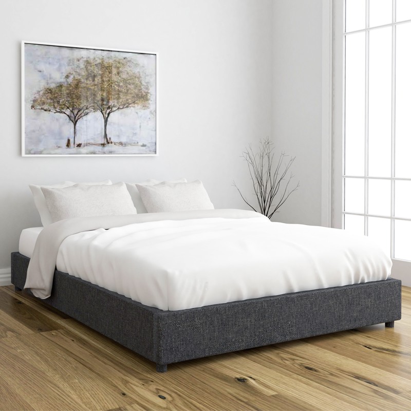 OWEN Queen/King Size Fabric Platform Bed Base kayu fabric katil queen frame Dark Grey color KATIL frame ready stock