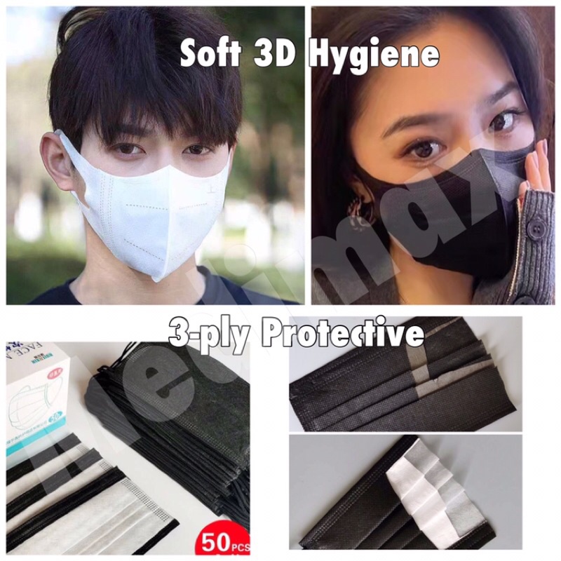 3ply 3D Black Face Mask Protective Disposable Non Medical Earloop Nose Mouth Protection