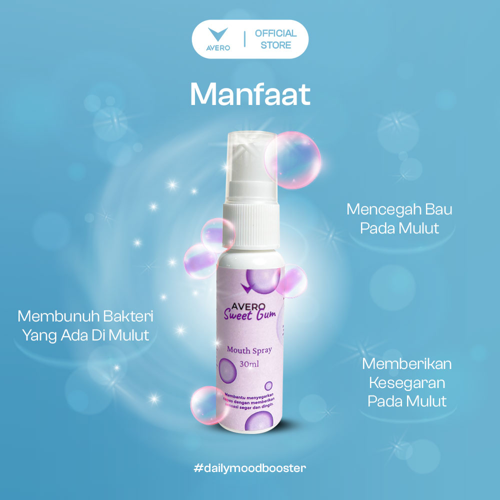 Avero Sweet Gum Mouth Spray – BPOM Halal Food Grade Mouth Freshener & Fragrance - All Day Sweet Fragrance Breath - 30ml