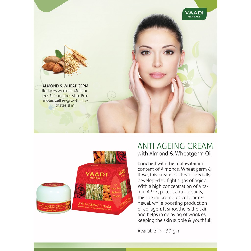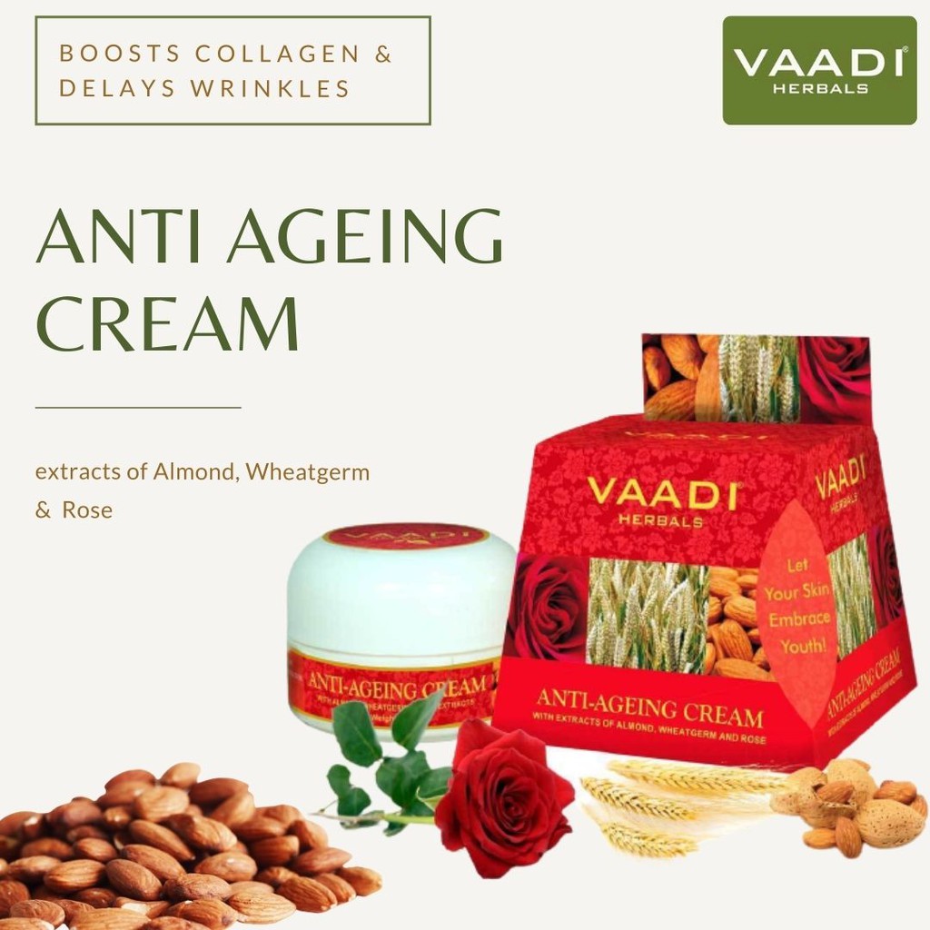 VAADI Anti Ageing Cream with Almond-Rose, Wheatgerm Boosts Collagen & Delays Wrinkles - Keeps Skin Soft & Youthful (30g)