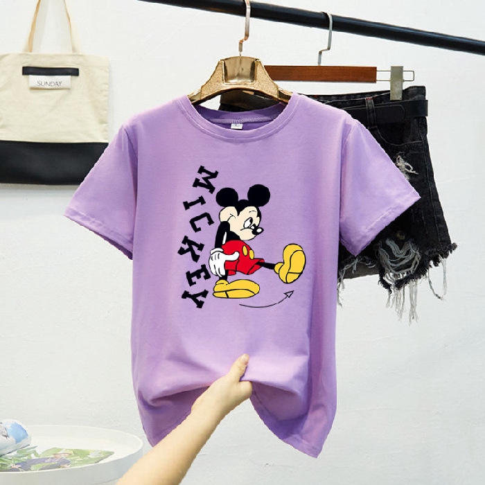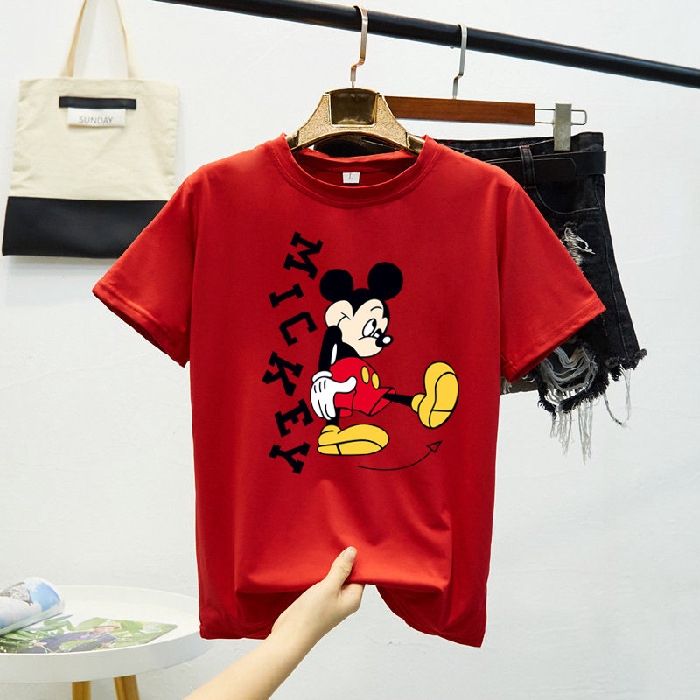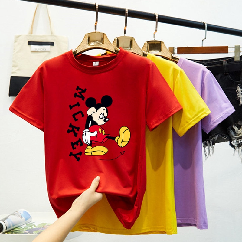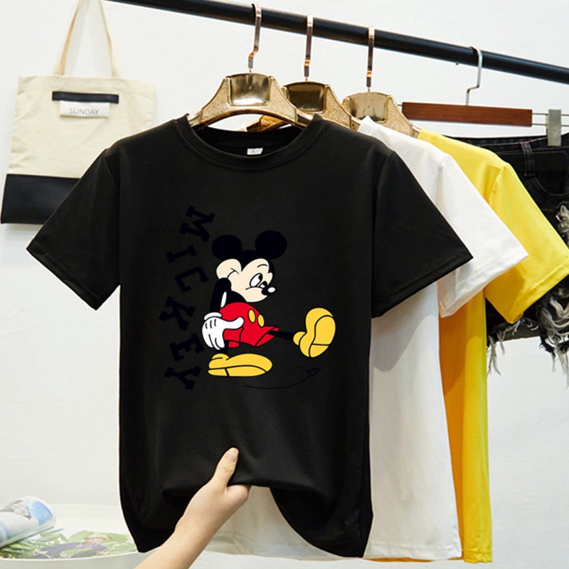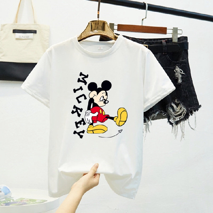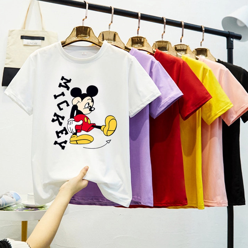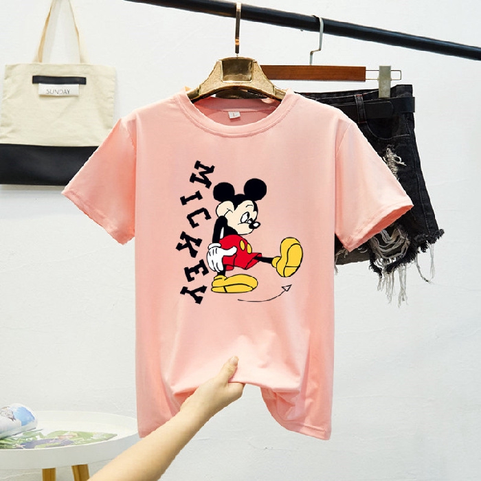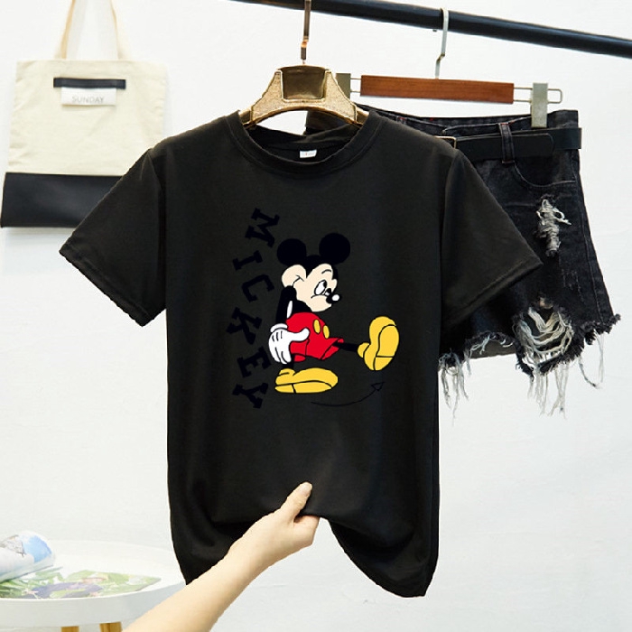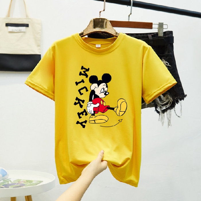 Men and women with the new summer Mickey Mouse short sleeve women's shirt Korean fashion casual round collar T-shirt女装T恤百搭女上衣短袖T恤
