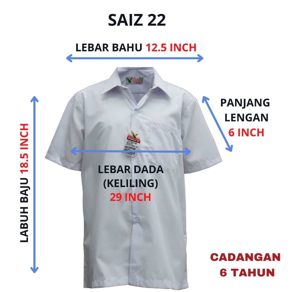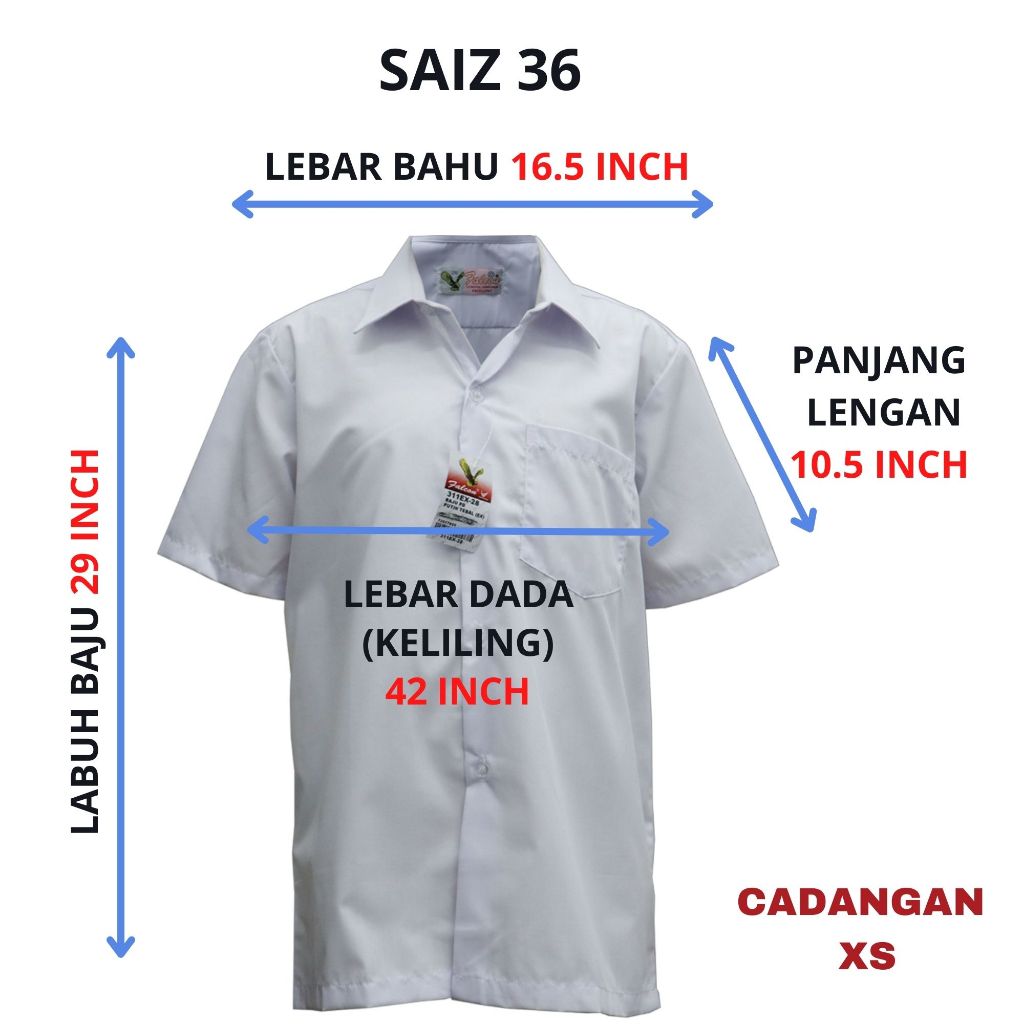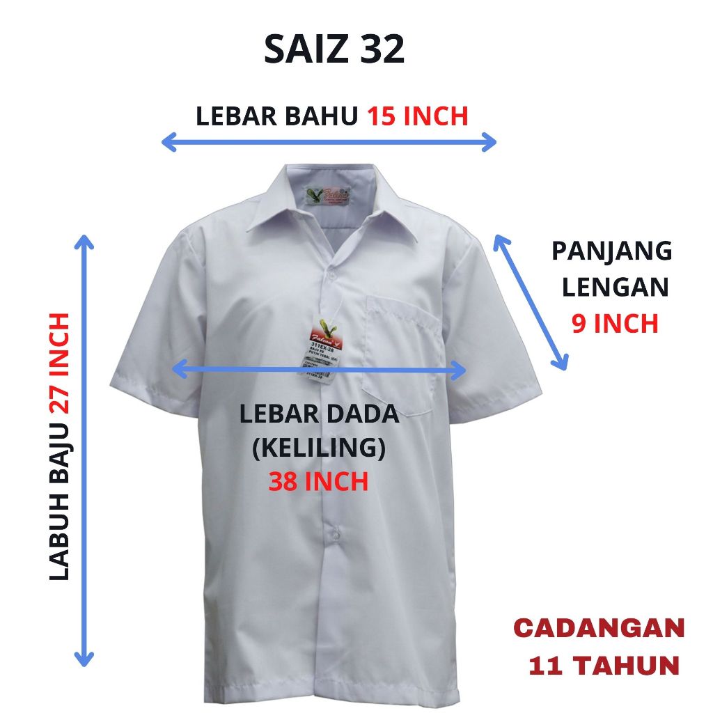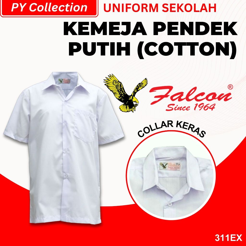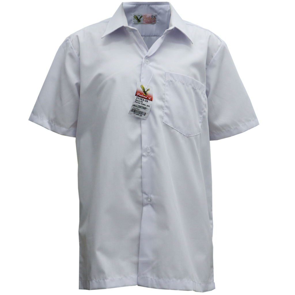 311EX - BAJU SEKOLAH JENAMA FALCON - KEMEJA LENGAN PENDEK PUTIH COTTON - 男白衣短袖 ( PUTIH NILA )