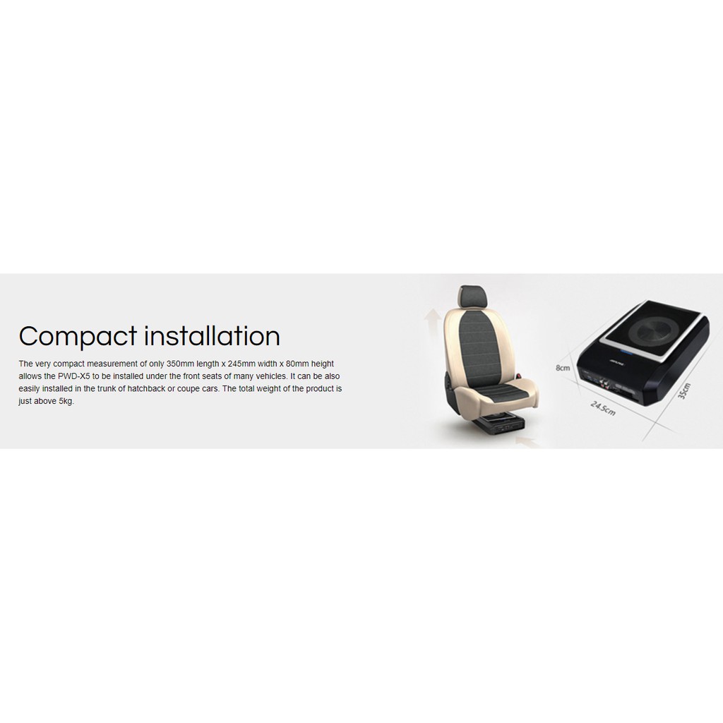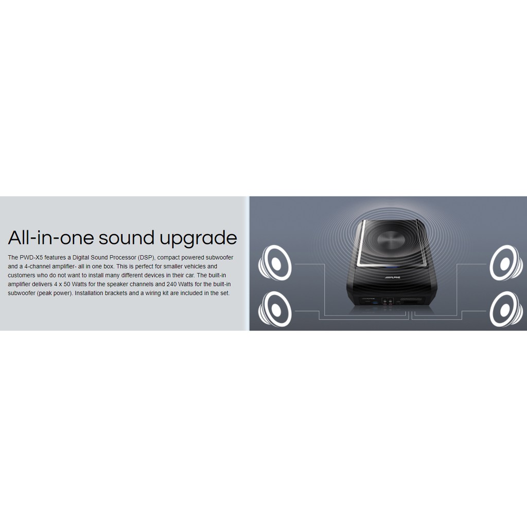 Alpine PWD-X5 - 8inch Car Subwoofer with Digital Signal Processor and 4 Channel Amplifier (All in One Compact)
