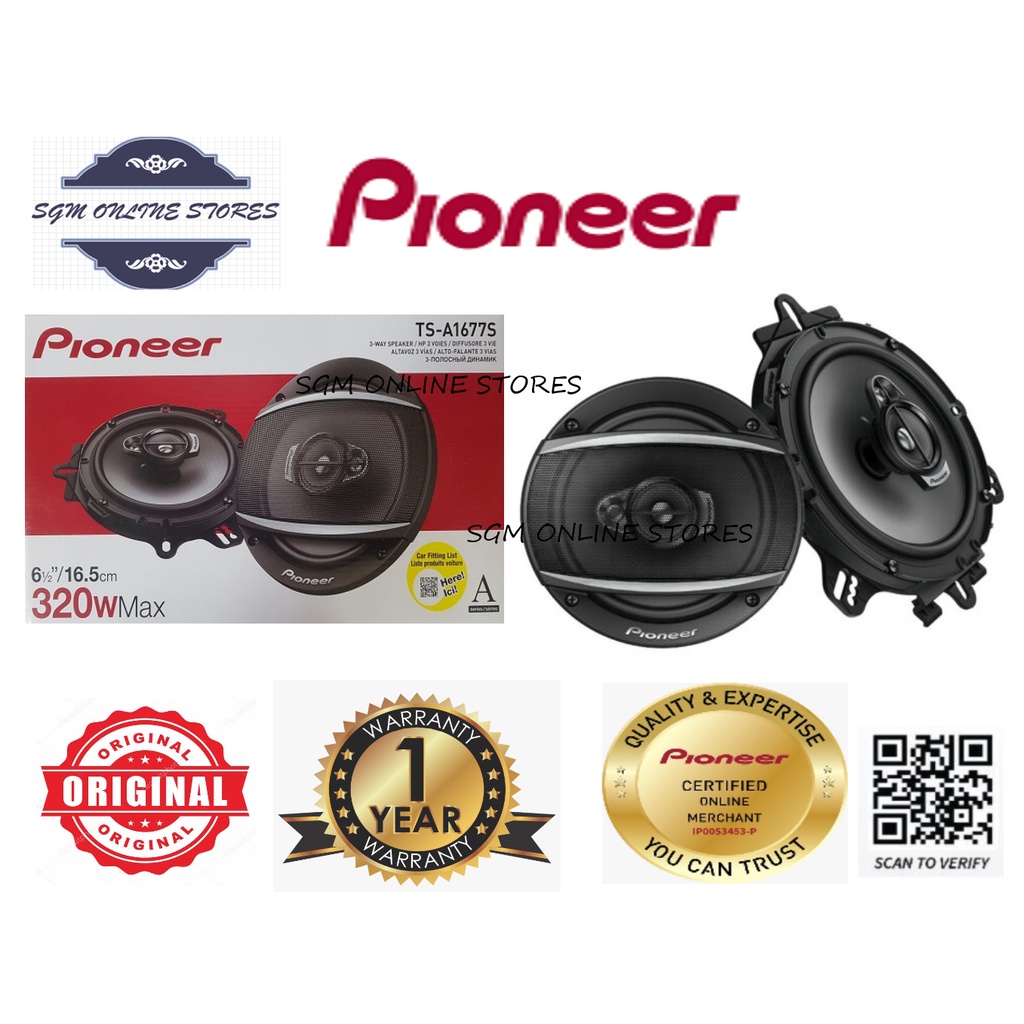 Pioneer TS-A1677S - 6.5inch 3Way Coaxial Car Speaker with Adapter Perodua / Proton / Honda / Toyota / Nissan 汽车喇叭