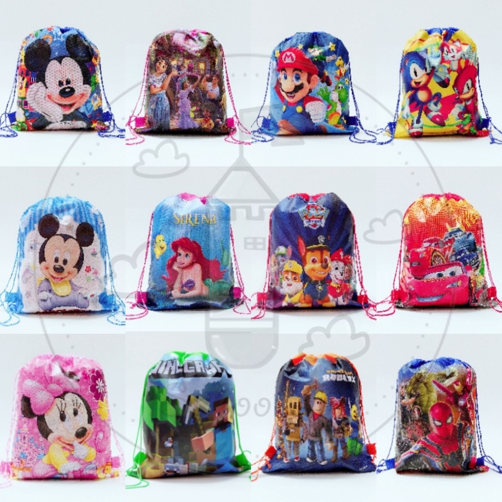 iSchoolDy Kids Cartoon Fabric Drawstring Backpack Econic Loot Bag Goodies Children Birthday Party Gift Bag
