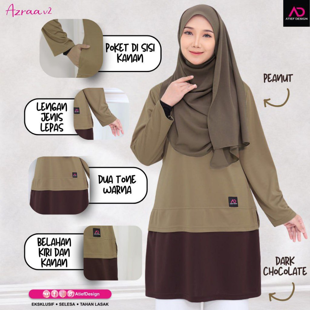 T-Shirt Muslimah Azraa V2 Microfiber Jersey 2 tones color