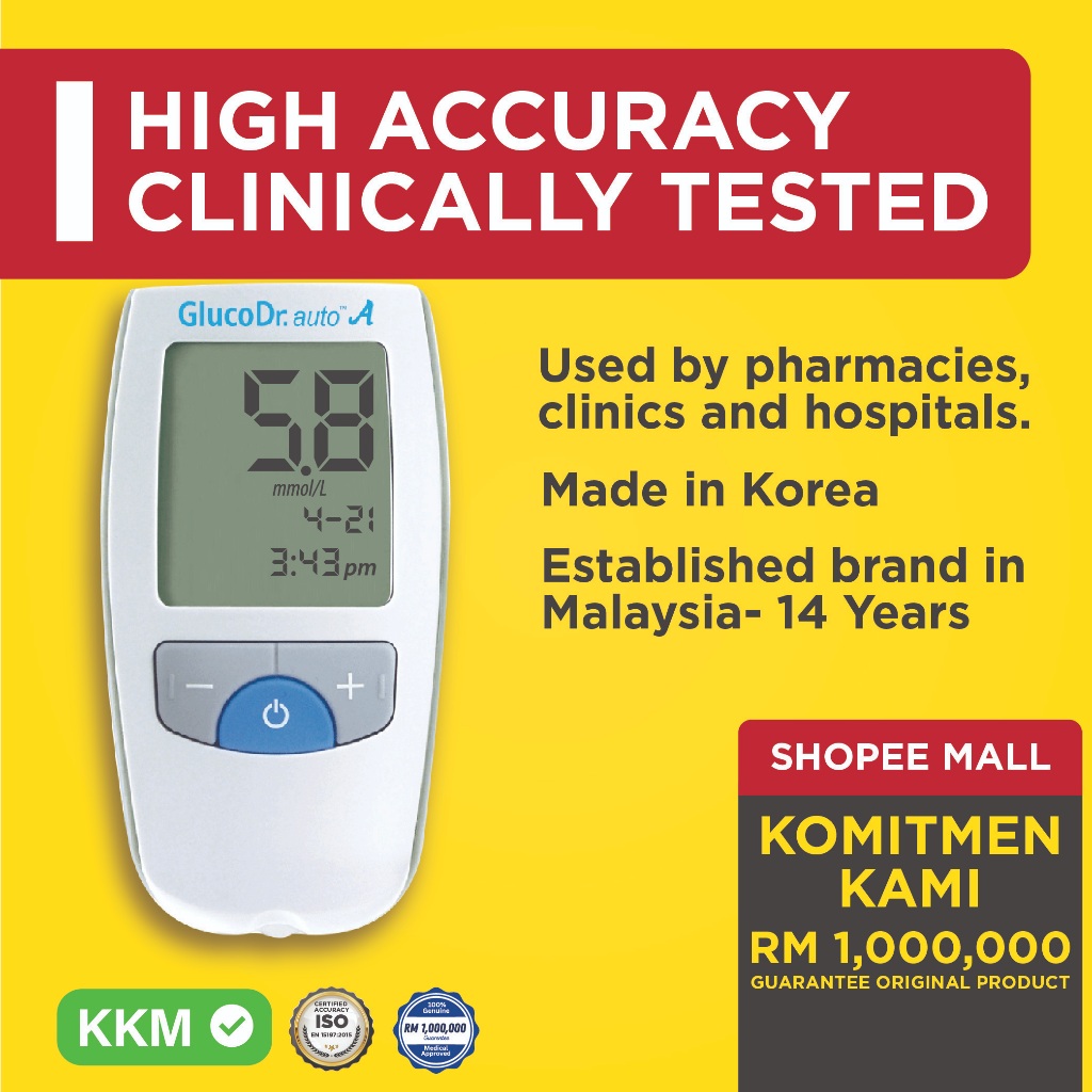 GlucoDr Auto A Blood Glucose Monitor With Test Strips Sugar Tester Kit Cek Gula Darah Alat Lancet