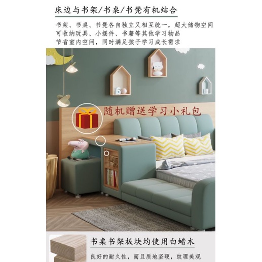Net celebrity children's bed boy girl tatami bed modern minimalist light luxury soft pack bed desk with guardrail single