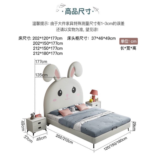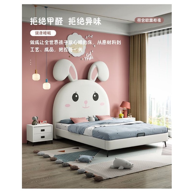 Children's bed girl princess bed modern minimalist pink 1.2m zodiac rabbit creative cartoon technology cloth bed