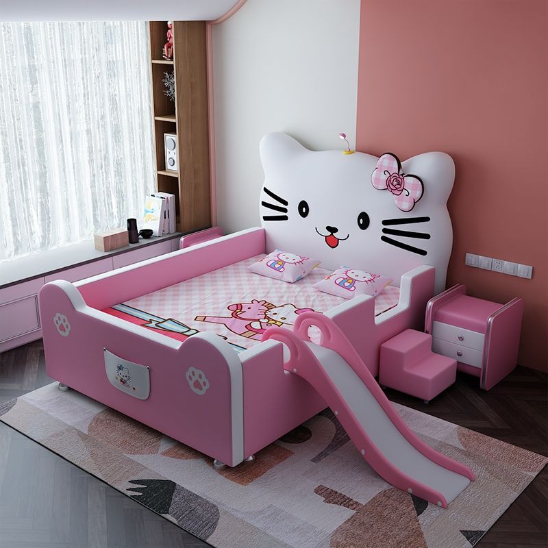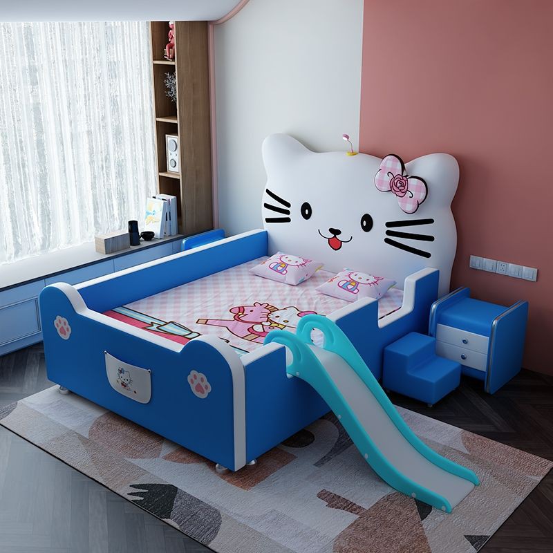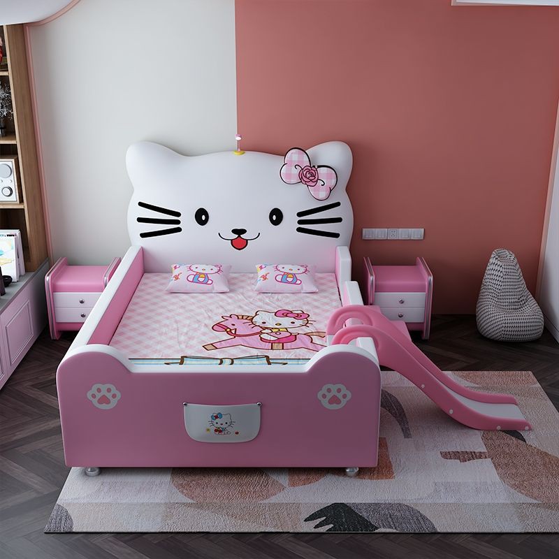 Children's bed single bed 1.5 boys and girls 1.2 cartoon cat bed creative multifunctional solid wood leather belt guardr