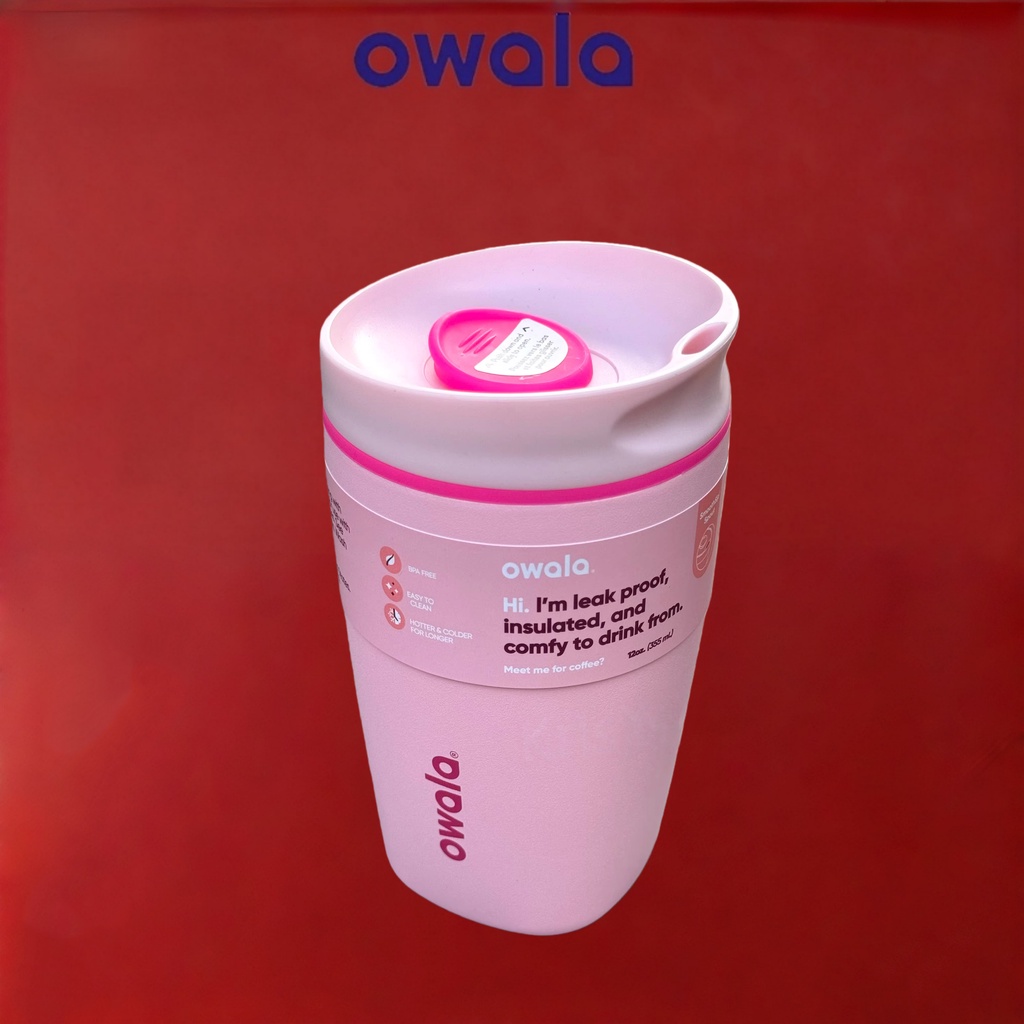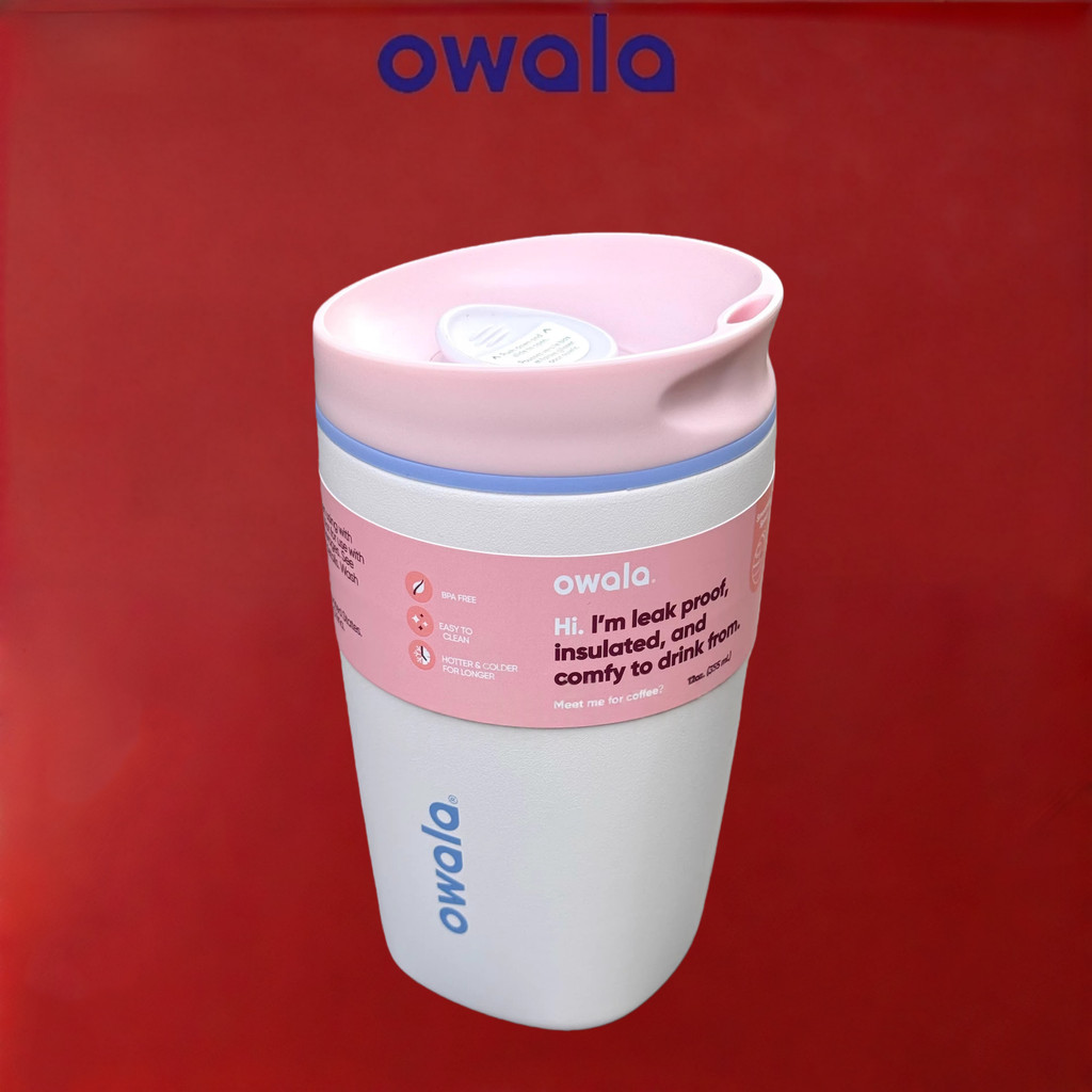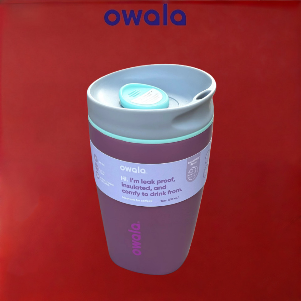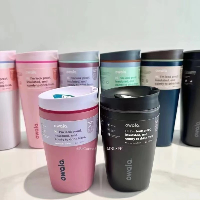 Insulated Coffee Tumbler Owala SmoothSip Slider – 12/20oz Leak Proof Stainless Steel Travel Mug, Reusable Vacuum Cup for Hot Coffee & Iced Drinks