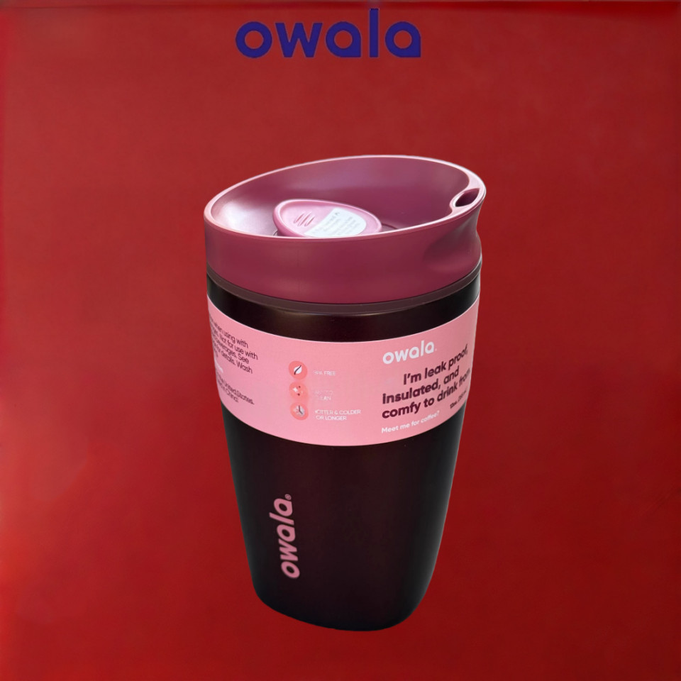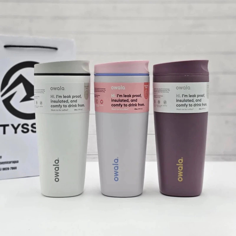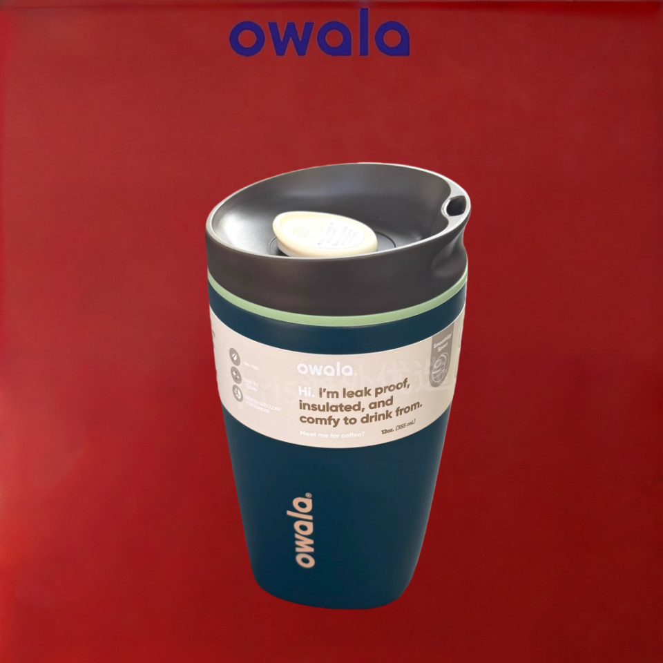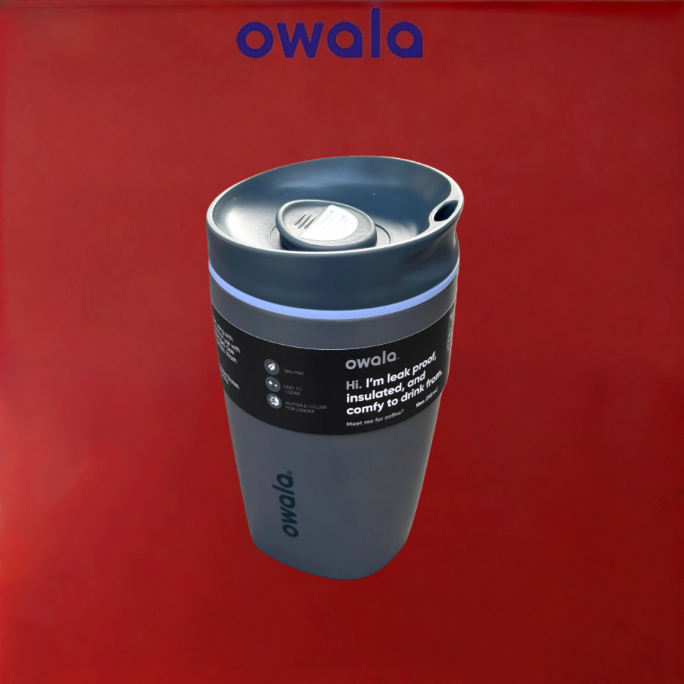 Insulated Coffee Tumbler Owala SmoothSip Slider – 12/20oz Leak Proof Stainless Steel Travel Mug, Reusable Vacuum Cup for Hot Coffee & Iced Drinks