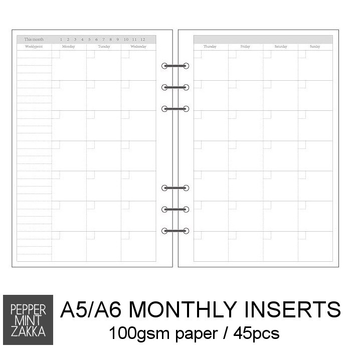 Lurveau 6-Ring A5/A6 Planner Refills [Blank/Lines/To-Do/Weekly/Monthly/Daily/Finance]