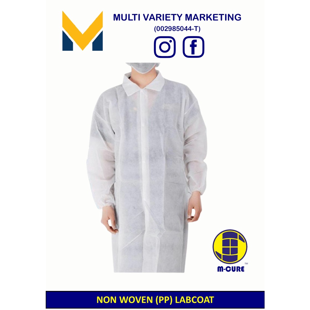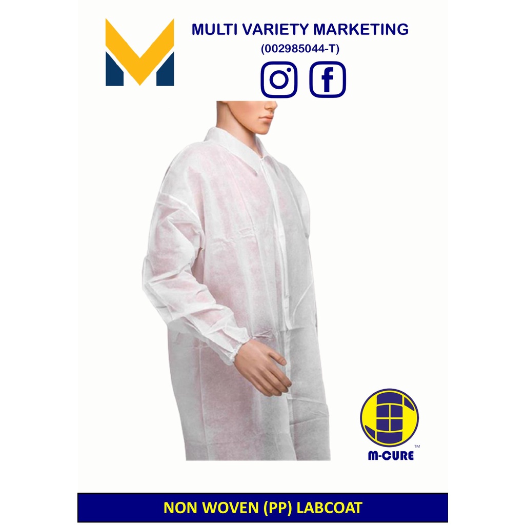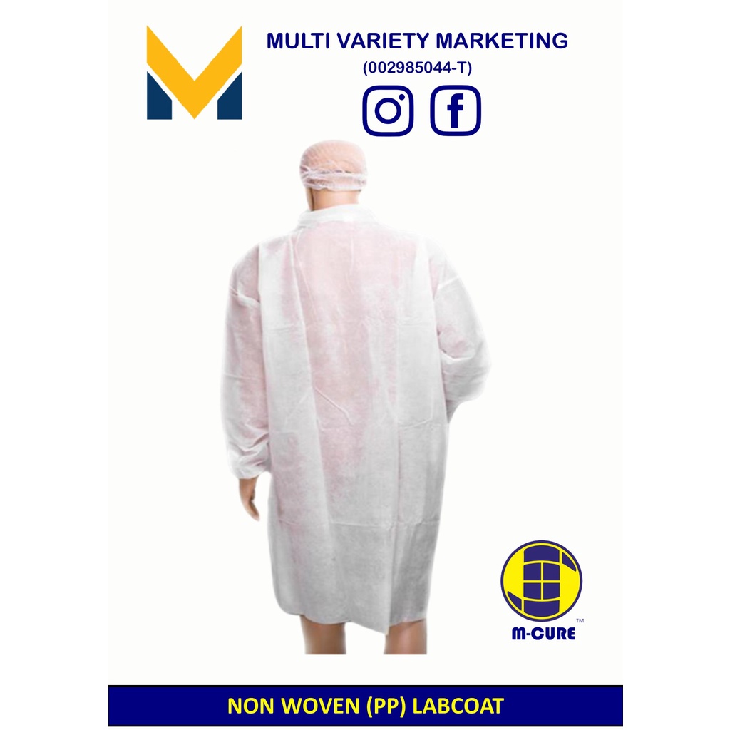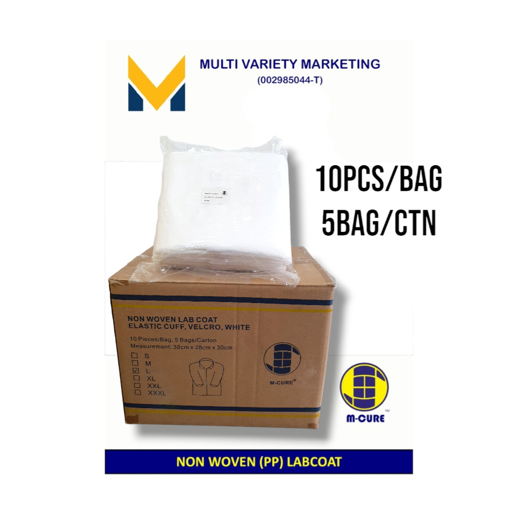 MVM - Labcoat Non Woven PP With Collar Elastic Cuff and Velcro BAG SIZE : L / XL
