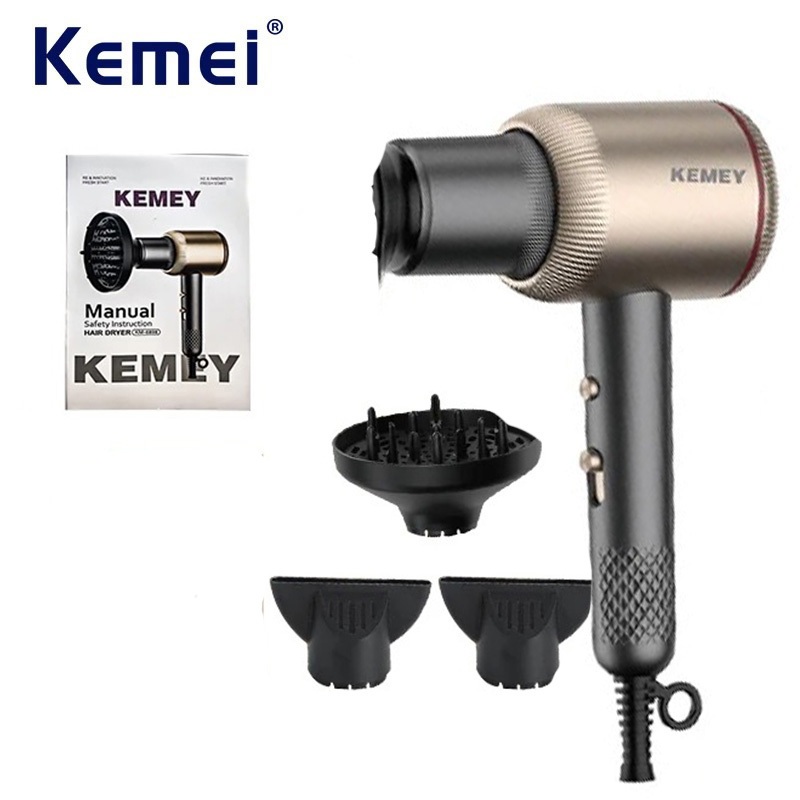 Kemei Professional Ionic Salon Hair Dryer Powerful 1800W Fast Drying Low Noise Blow Dryer with 2 Concentrator Nozzle 1 Diffuser