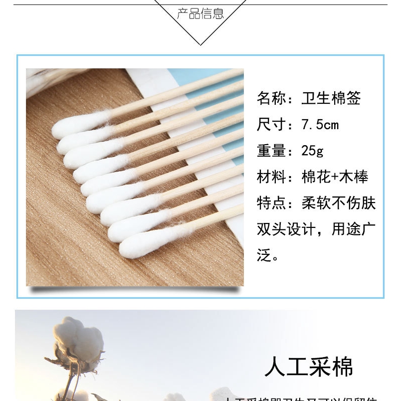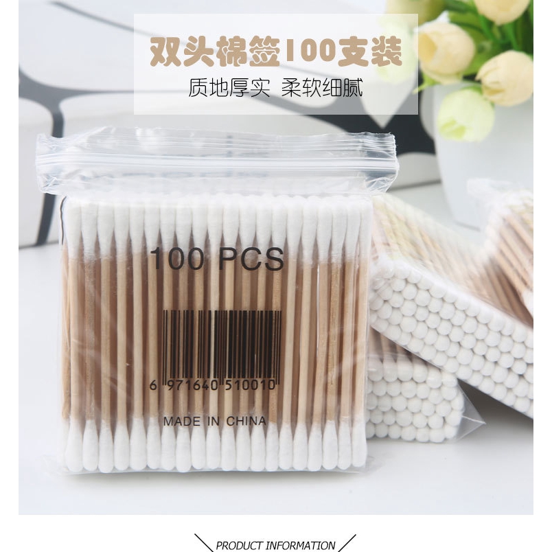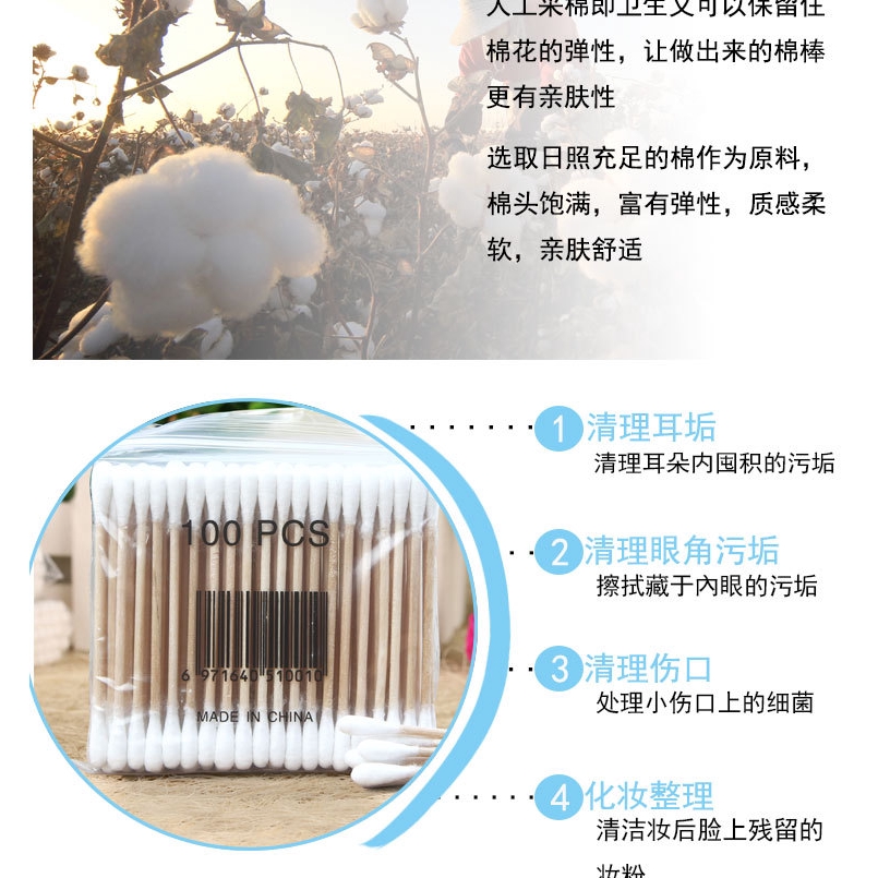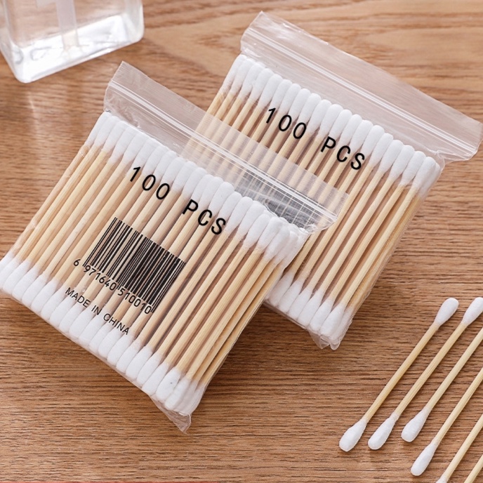 Bamboo Cotton Buds dewasa Cotton Swabs Adults good quality Medical Ear Cleaning Wood Sticks 100 batang 200 tips
