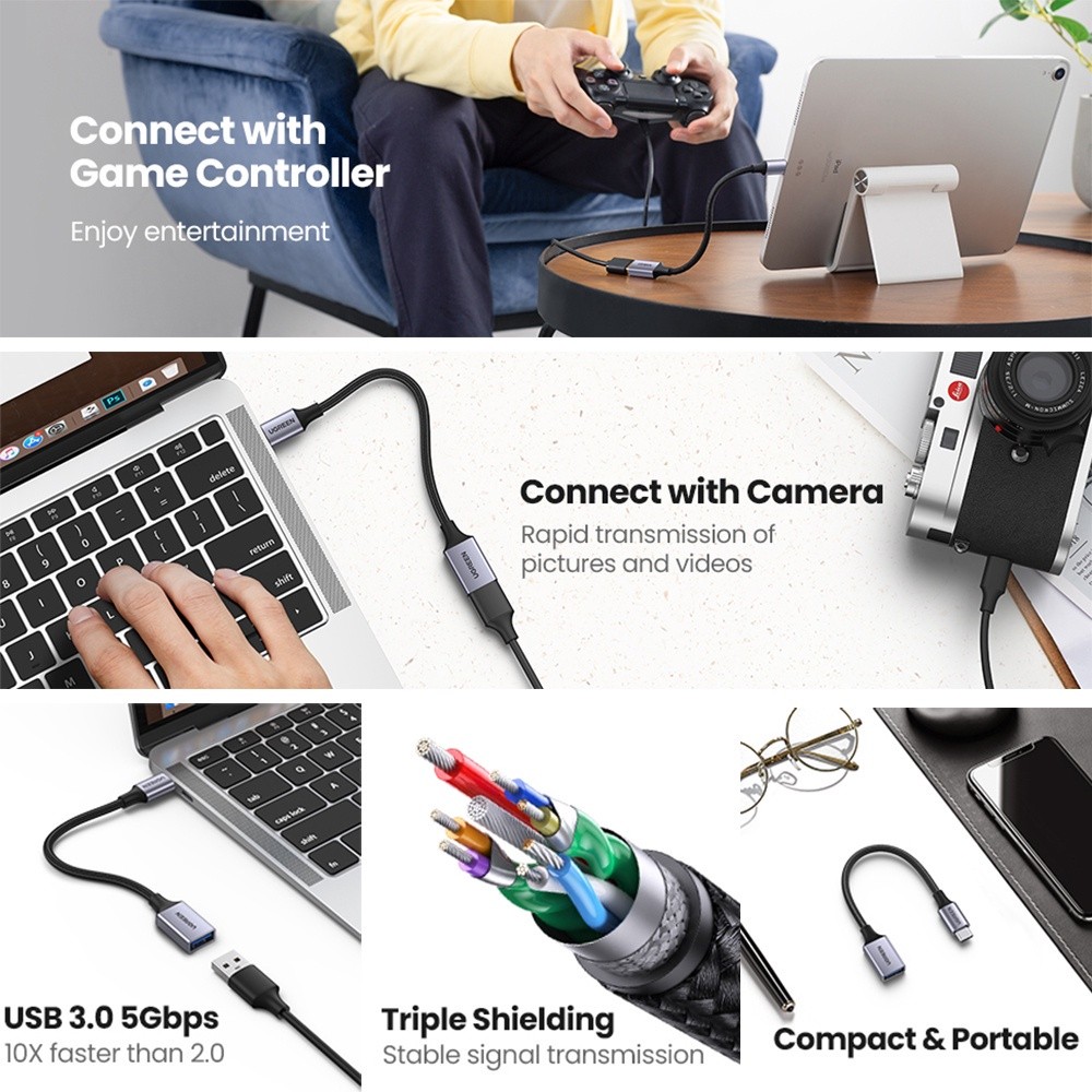 UGREEN USB C to USB 3.0 Adapter Type C OTG Cable Thunderbolt 3 to USB Female Adapter OTG Cable Nylon Braided for MacBook
