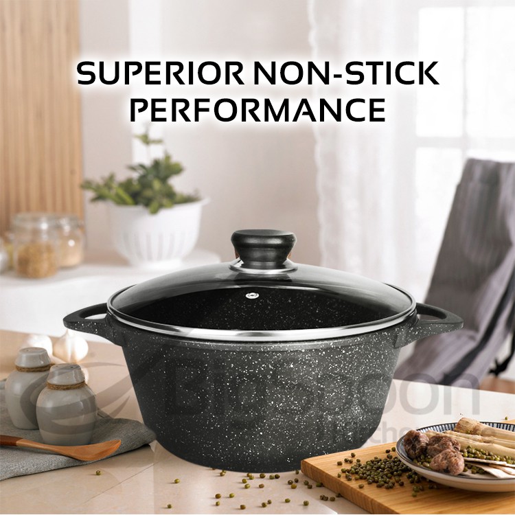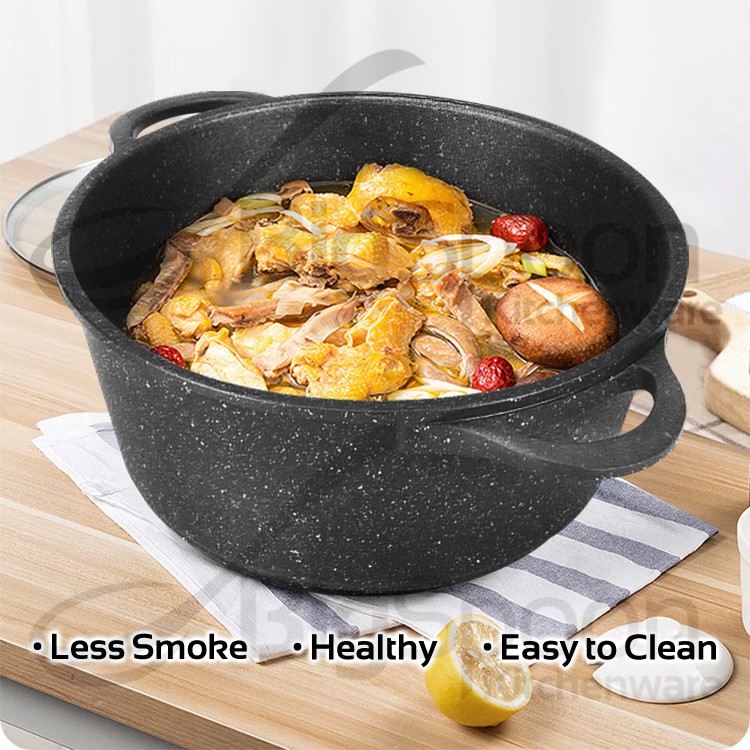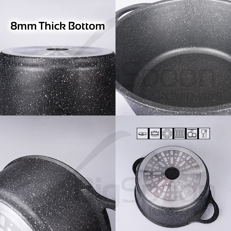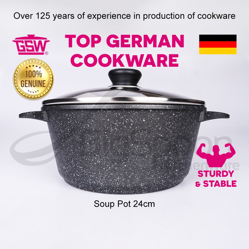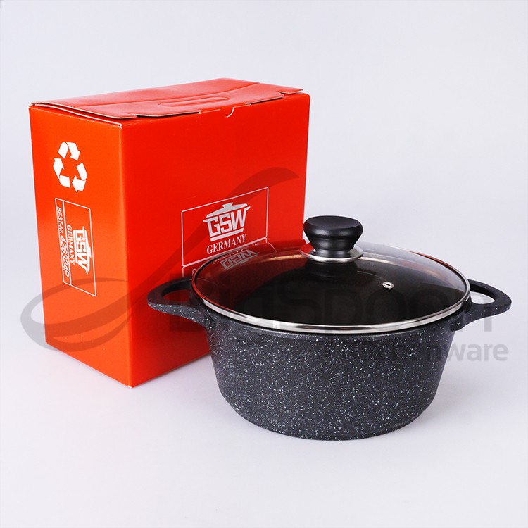 GSW Germany Titanium Granite Non-Stick Soup Pot Induction with Glass Lid Periuk Sup 汤锅不粘鍋 24cm