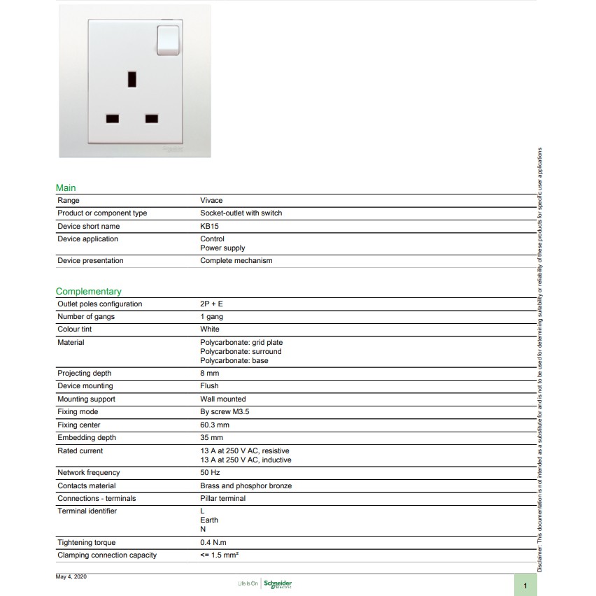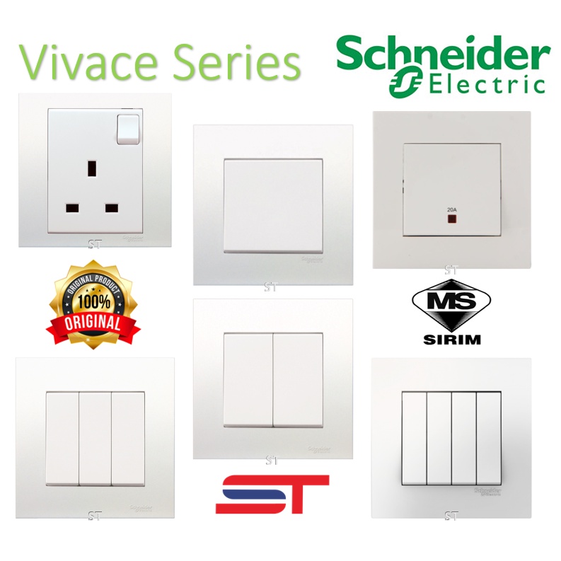 SCHNEIDER VIVACE 13A SWITCH SOCKET OUTLET SIRIM APPROVED /20A DOUBLE POLE/BELL PUSH/ SWITCHES / UMS SWITCH